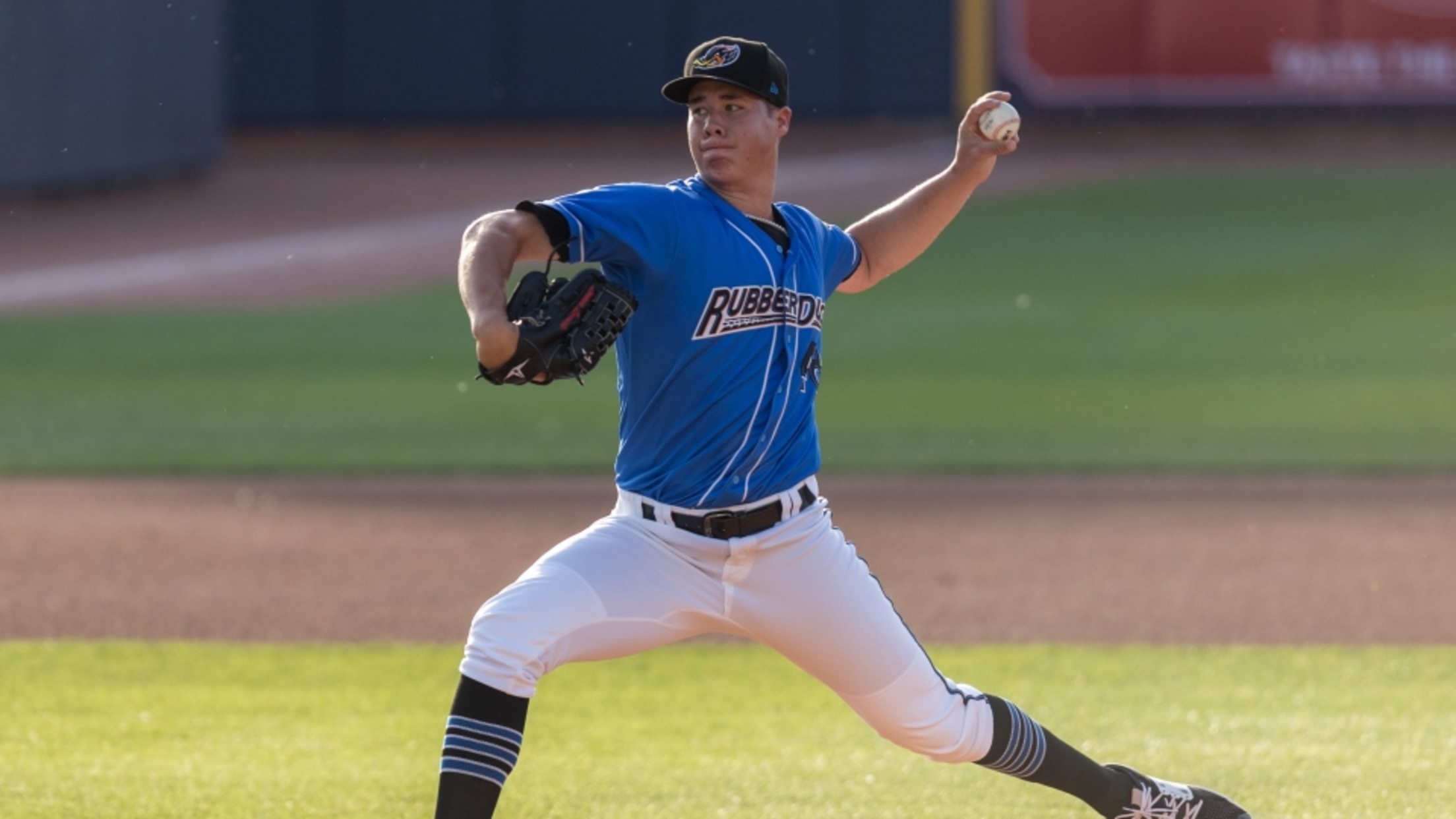 Akron's Luis Lugo was dominate on the mound throwing 6.1 shutout innings of two hit baseball to lead the RubberDucks over the Rumble Ponies 1-0, Saturday night at Canal Park.