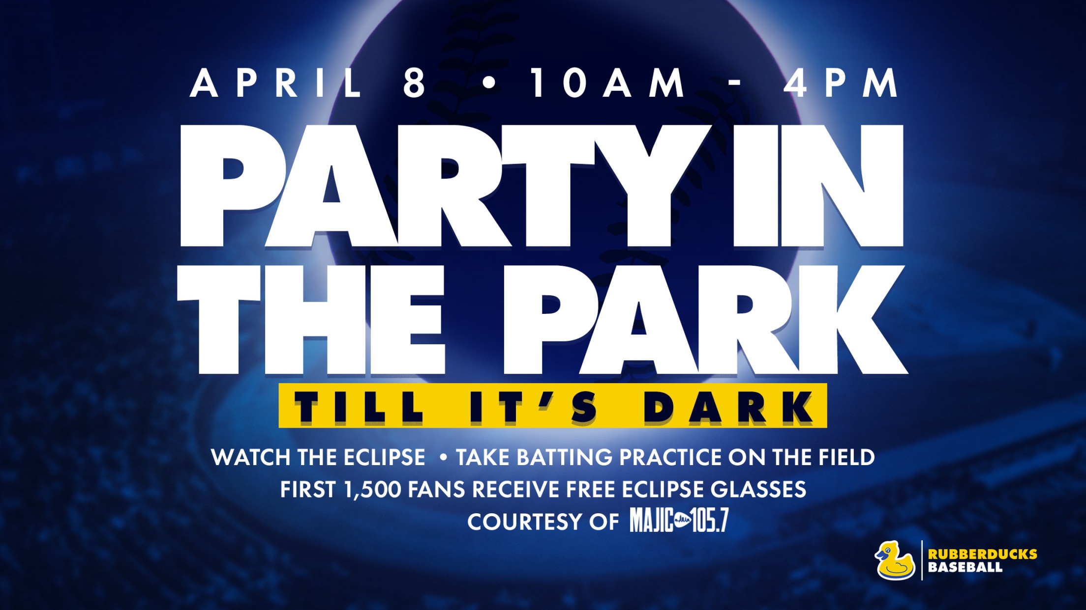(AKRON, OHIO) March 14, 2024 – The Akron RubberDucks partner with Majic 105.7 to host Party in the Park till it’s Dark on Monday, April 8 from 10 a.m. – 4 p.m. This event will allow fans to take batting practice on the field at Canal Park, enjoy a festive atmosphere at Canal Park and watch the total eclipse from the outfield grass. Tickets start at just $5.