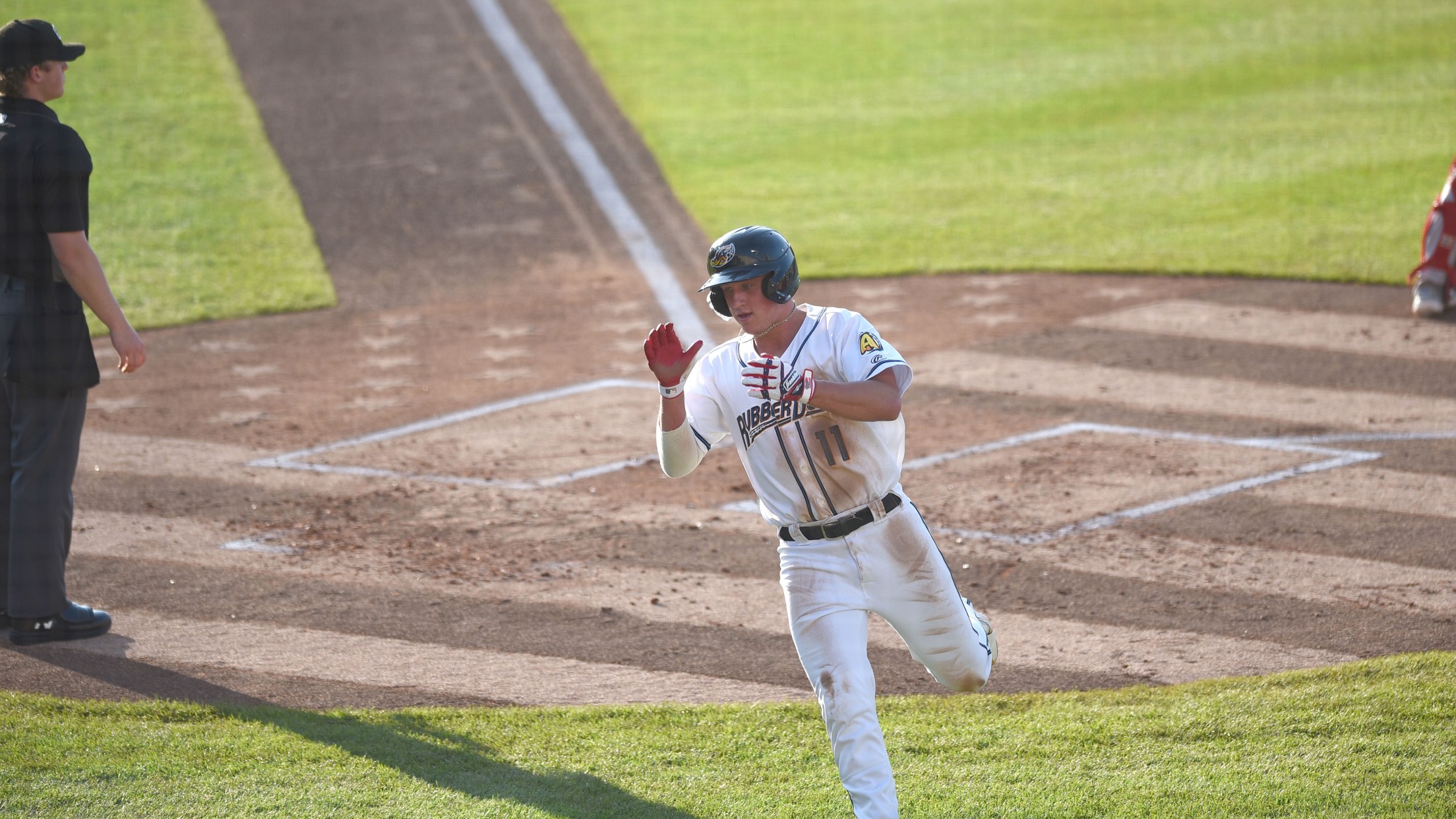 The Akron RubberDucks struck for four in the first to back strong pitching in a 4-3 series opening win over the Harrisburg Senators on Tuesday night at Canal Park. Cleveland Guardians pitcher Peyton Battenfield struck out three in his rehab start.