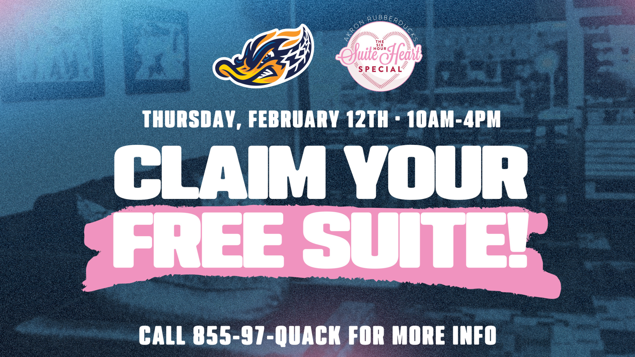 (AKRON, OHIO) January 30, 2026 – It is almost February in Akron, snow is on the ground, love is in the air and the fan-favorite Akron RubberDucks “Six-hour Suite Heart Special” returns Thursday, Feb. 12, from 10 a.m. until 4 p.m.!