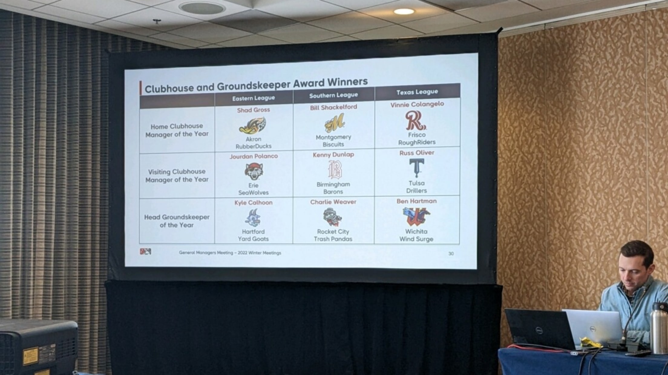 (AKRON, OHIO) Dec. 6, 2022 – Minor League Baseball named RubberDucks Director of Player Facilities Shad Gross the Eastern League Home Clubhouse Manager of the Year.