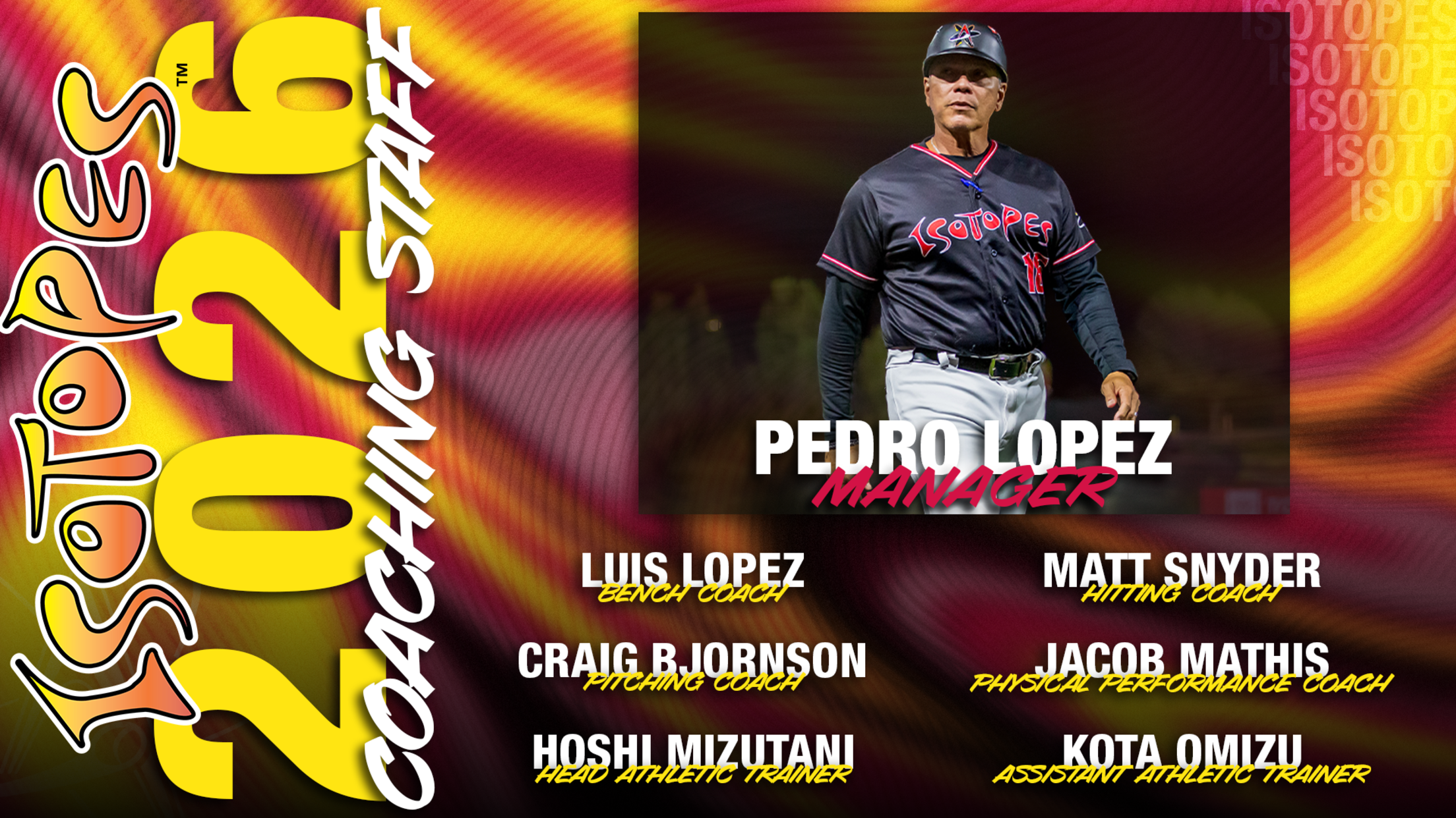 The Albuquerque Isotopes, in conjunction with the Colorado Rockies, today announced their 2026 coaching staff, headlined by the return of fourth-year Manager Pedro Lopez. Joining Lopez in the Isotopes dugout are Bench Coach Luis Lopez, Hitting Coach Matt Snyder, and Pitching Coach Craig Bjornson, all making their Isotopes coaching debuts.