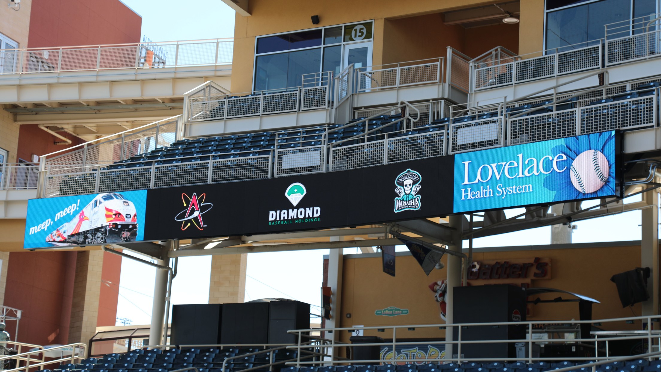 The Albuquerque Isotopes today unveiled two new LED auxiliary scoreboards that have been purchased to enhance the fan experience inside Rio Grande Union Field at Isotopes Park. Situated along the Club Level façade on both the first and third base sides of the ballpark, the new additions represent the first major facility capital investment made by the franchise’s new owner, Diamond Baseball Holdings (DBH).