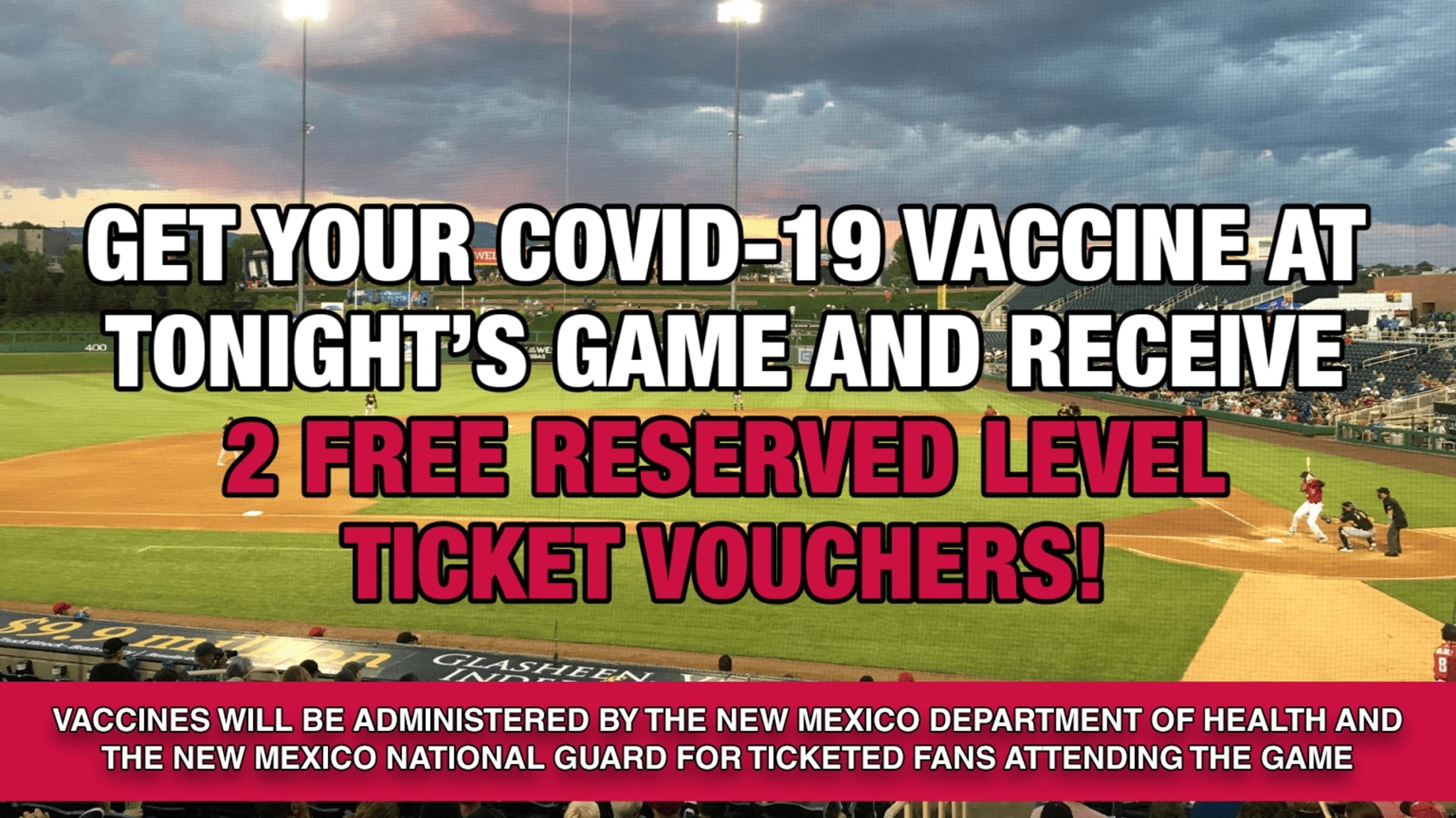 Individuals who receive a shot will be given two (2) Reserved Level ticket vouchers for any remaining 2021 Albuquerque Isotopes game, excluding July 4, based on ticket availability.