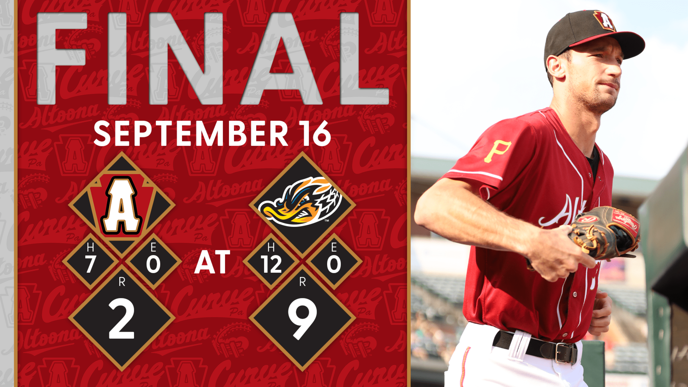 AKRON, OH – Akron scored six times across the sixth and seventh inning against the Curve bullpen and cruised to a 9-2 win over Altoona on Saturday night at Canal Park.