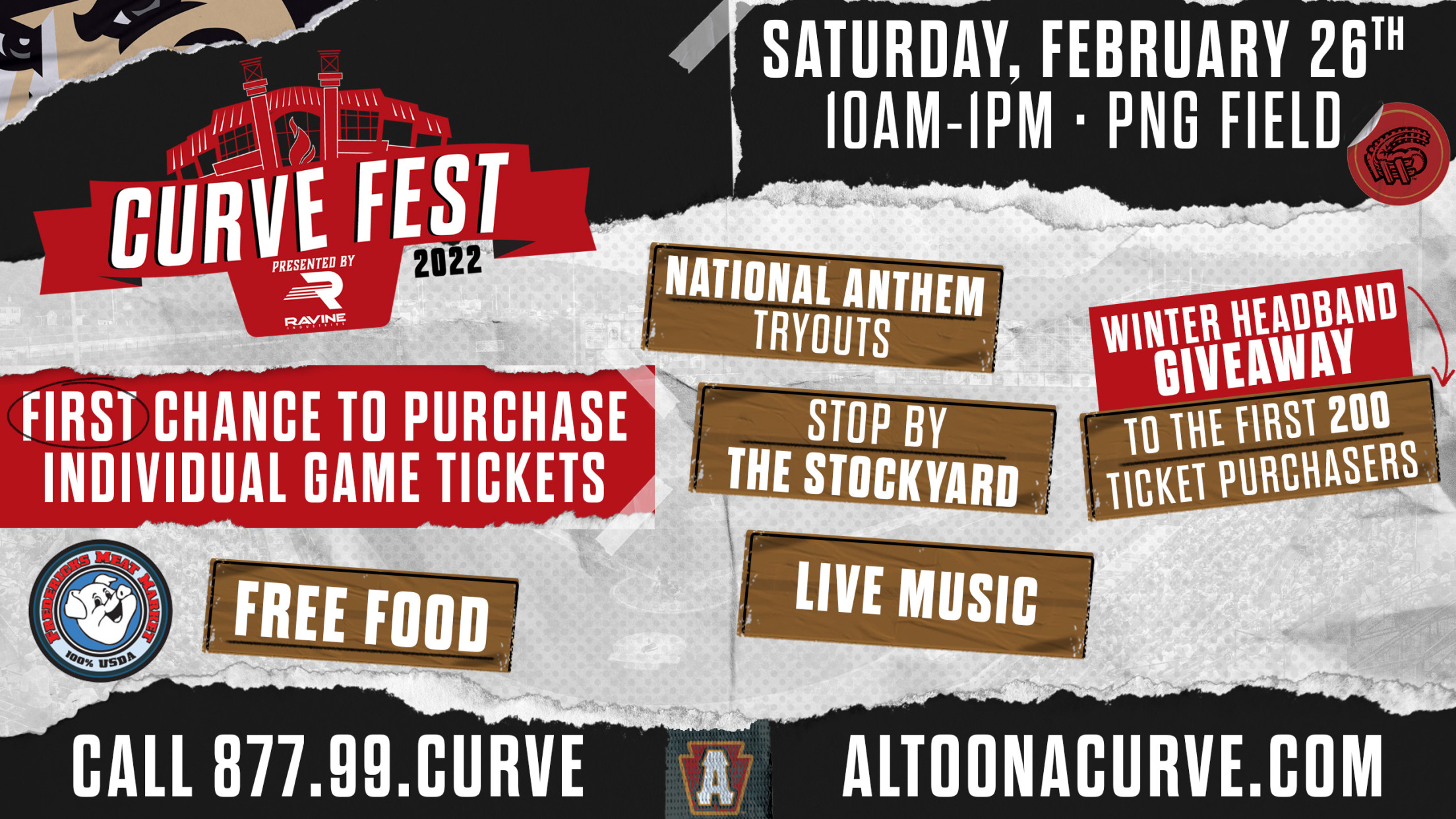 CurveFest will give fans their first opportunity to purchase single game tickets and the first 200 fans that purchase at PNG Field will receive a Curve Winter Headband, presented by Ravine. Fans who purchase tickets for Opening Night at CurveFest will receive an additional complimentary ticket, of equal or lesser value, to any other April or May 2022 home game.