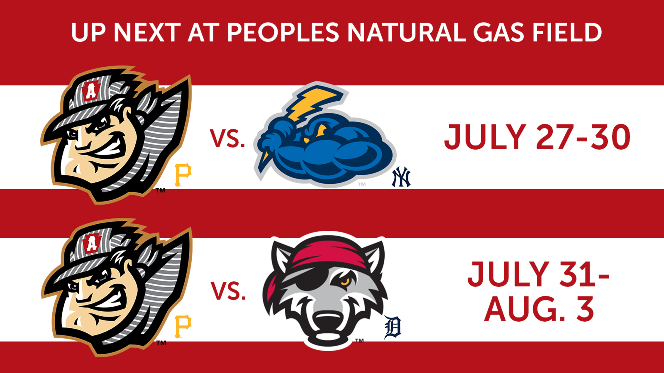 The Altoona Curve, Double-A affiliate of the Pittsburgh Pirates, come home for an eight-day, nine-game homestand, hosting the Trenton Thunder (AA - New York Yankees) and Erie SeaWolves (AA - Detroit Tigers) at Peoples Natural Gas Field beginning on Thursday night.