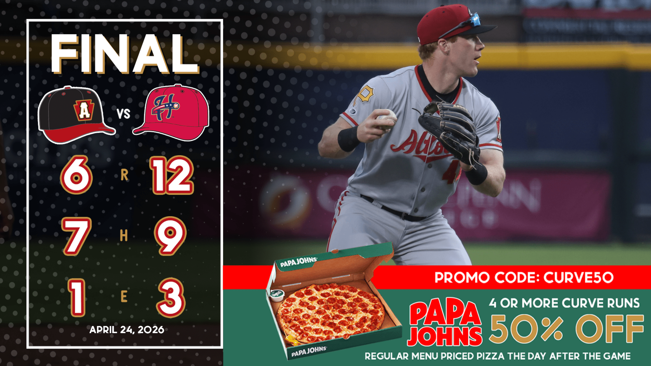 The Curve and Harrisburg Senators continue their week-long series on Saturday, April 24 at 6:00 p.m. Altoona will send RHP Khristian Curtis to the mound, while the Senators plan to start RHP Connor Van Scoyoc.