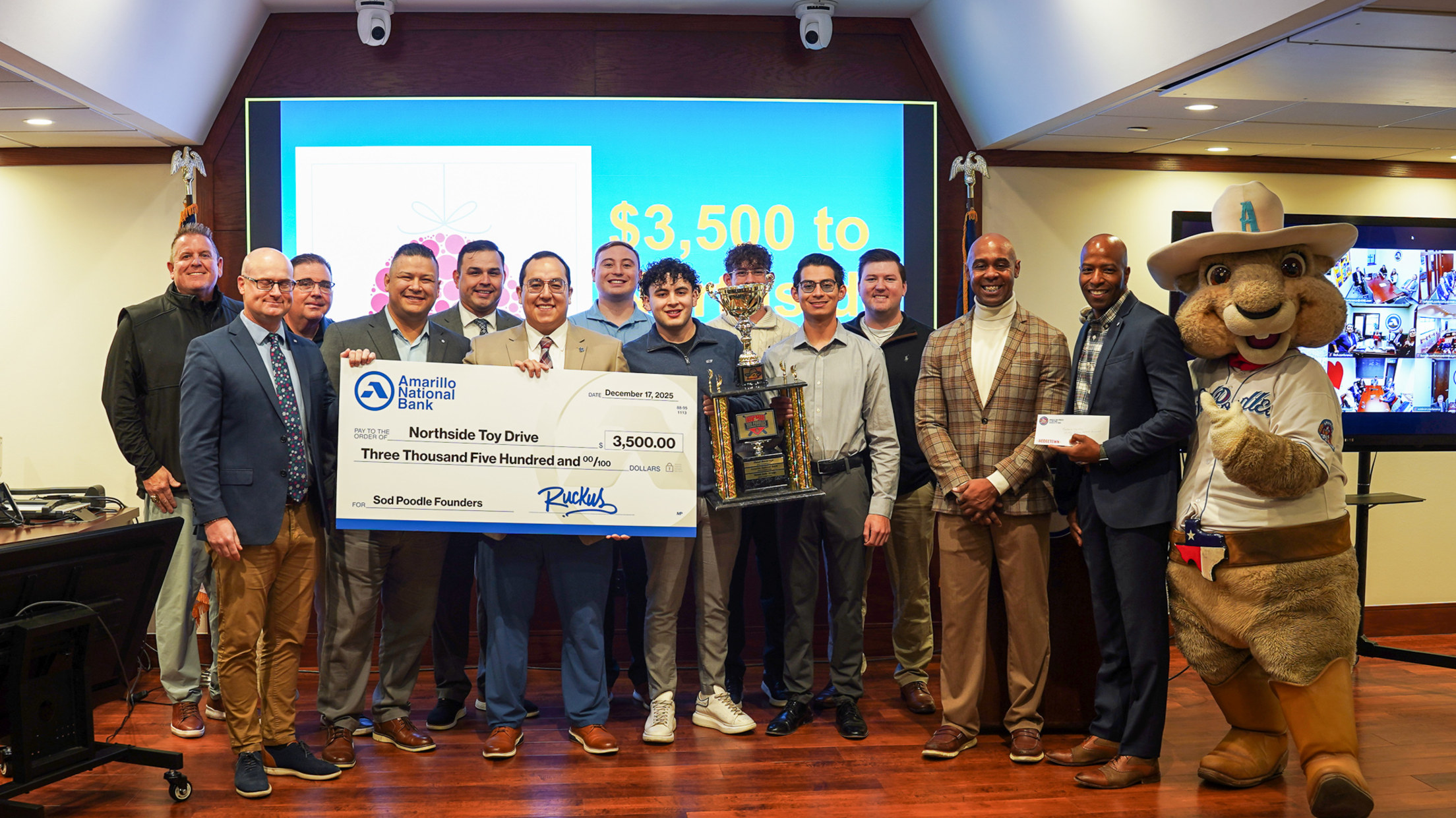 On the morning of Wednesday, December 17, Amarillo National Bank (ANB) presented a check in the amount of $3,500 made out to the Northside Toy Drive. A founding partner of the Amarillo Sod Poodles, ANB received the aforementioned prize money from the 2025 edition of the Founding Partners Softball Tournament