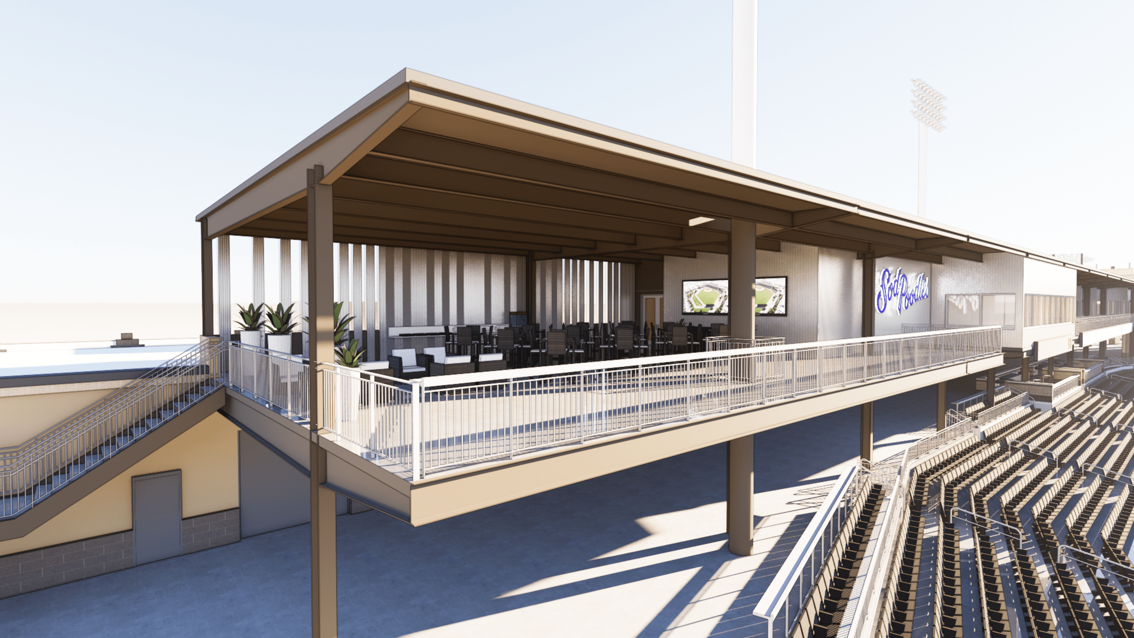 The 2,000 sq. ft Fiesta Deck will be the largest covered hospitality area in the ballpark and will include multiple large TVs to ensure fans don’t miss any of the action overlooking the first base side of the stadium. The addition of the Fiesta Deck will also add conveniently located restrooms to the east wing of the Suite Level for Fiesta Deck guests and current suite holders down the first base line.