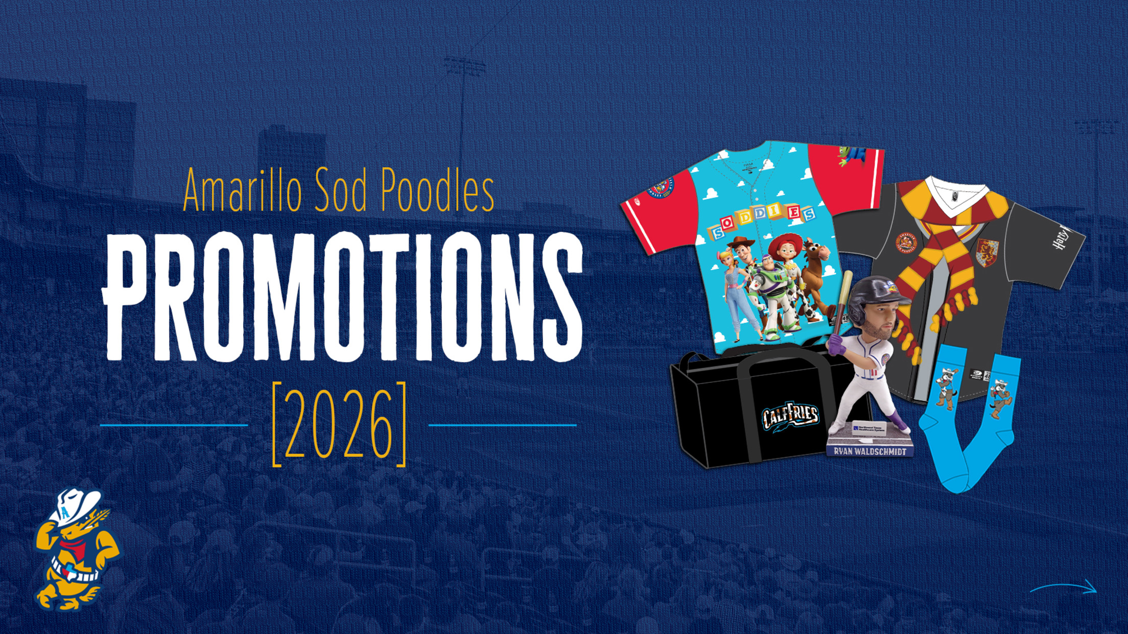AMARILLO, TX (January 29, 2026) – The Amarillo Sod Poodles today announced the promotional schedule for the 2026 season. Familiar favorites such as fireworks, drone shows and bobbleheads return to the Panhandle along with tons of exciting themes and items, making HODGETOWN the place to be this summer.