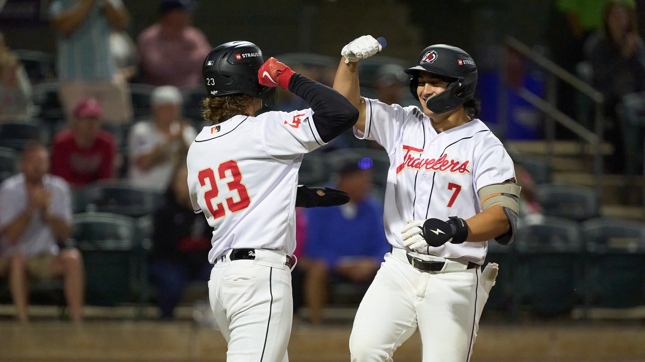 Box Score North Little Rock, AR—A three home run barrage led the Arkansas Travelers to a 4-2 comeback win on Tuesday night in the home opener. Down a pair of runs before they came to bat, The Travs used a pair of solo shots from Lazaro Montes and Michael Arroyo
