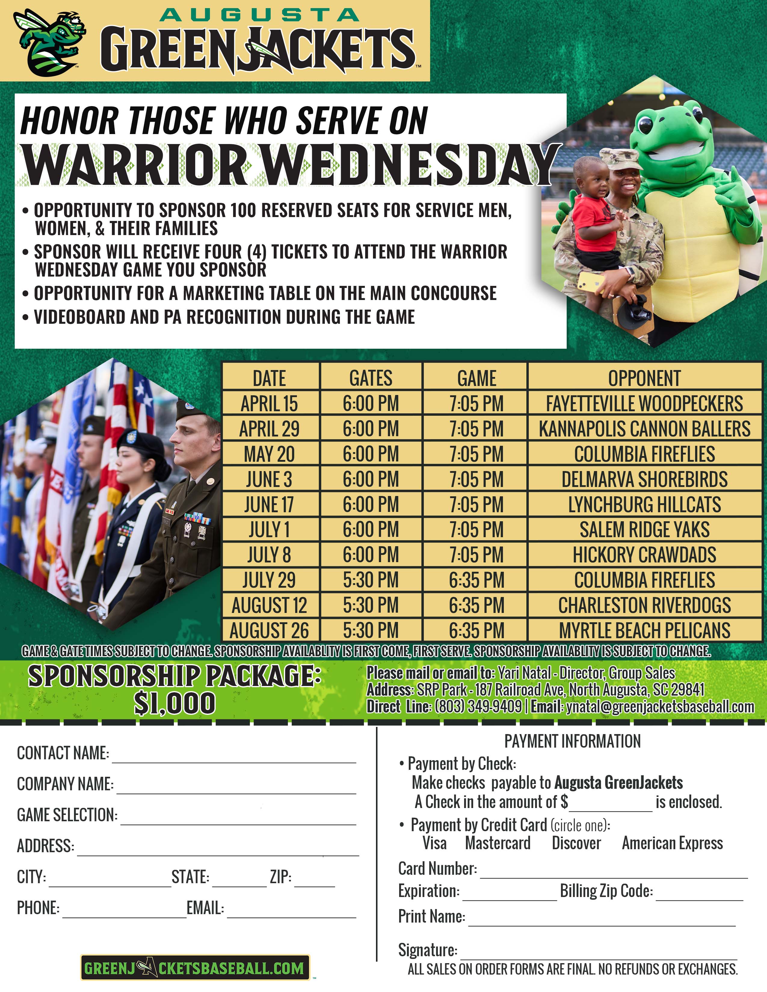 Availability subject to change. Please contact the GreenJackets to confirm availability of sponsor opportunities.