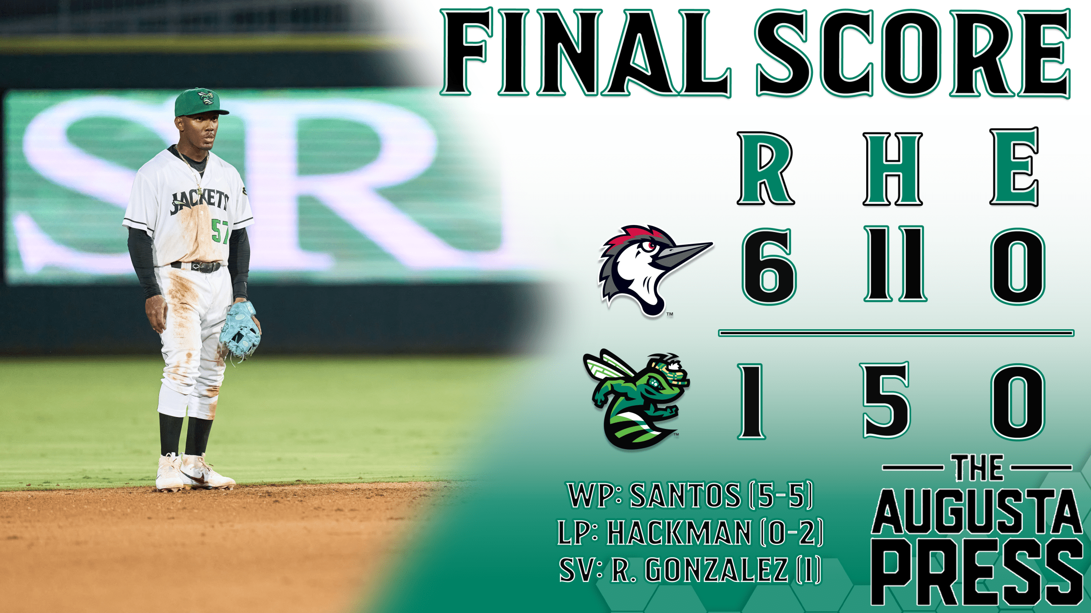 After four scoreless from Santos, the Woodpeckers turned to Rafael Gonzalez in his 3rd outing since being promoted from the FCL. Gonzalez was flawless, dotting the corners with three pitches as he carved the Augusta lineup to the tune of 3 hitless innings with 7 strikeouts. The GreenJackets did not muster a hit after Gil’s single to lead off the 5th, and fell victim to the bullpen as Gonzalez picked up his first Single-A save.