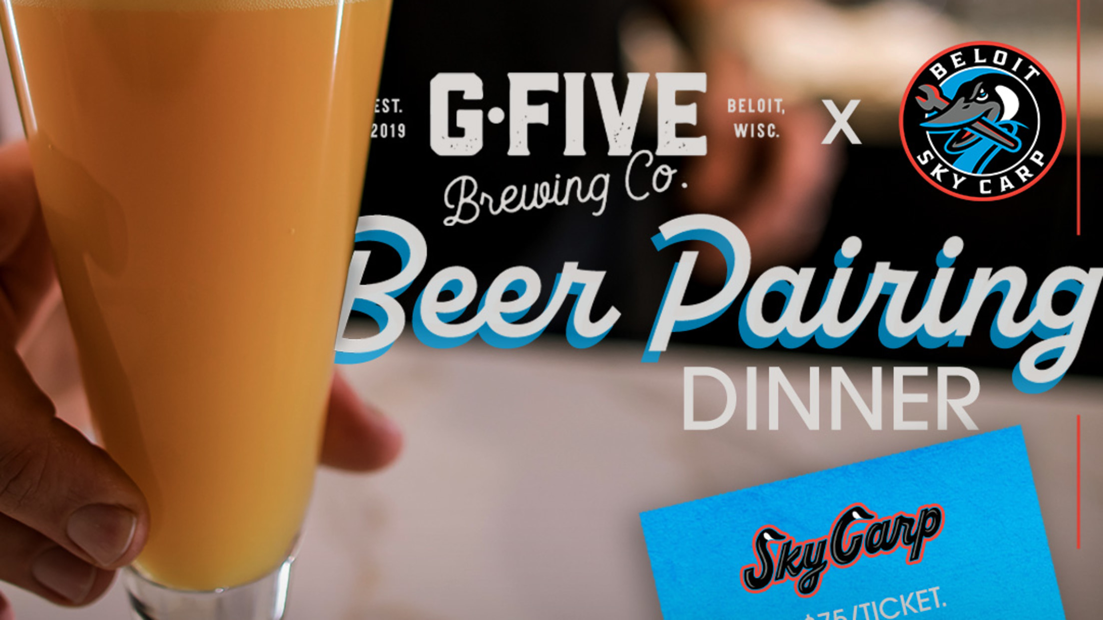 Join us for a fantastic evening at ABC Supply Stadium! We are hosting the second annual Beer Pairing Dinner in conjunction with G5 Brewing on Friday, March 10. Ticket includes a four-course meal, beer samples with each course from G5, and gratuity. Sky Carp Executive Chef Matthew Austin will be on hand along with a representative from G5 to explain the pairing for each course. Located in the Stadium's Beloit Health System Club, it promises to be an evening to remember! A reception will begin at 6:30, with the dinner beginning at 7.