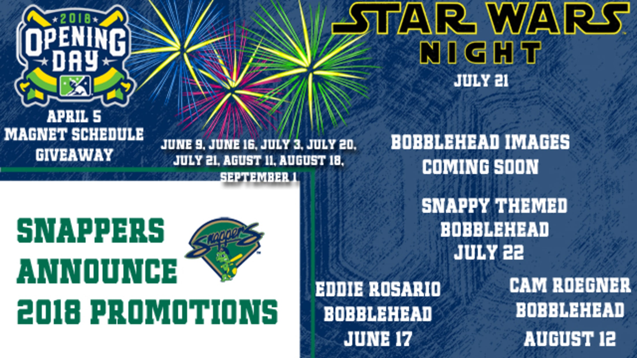 The Beloit Snappers have unveiled their Daily and Special promotions for the 2018 season including three bobblehead giveaways, eight firework nights and a number of other giveaways.