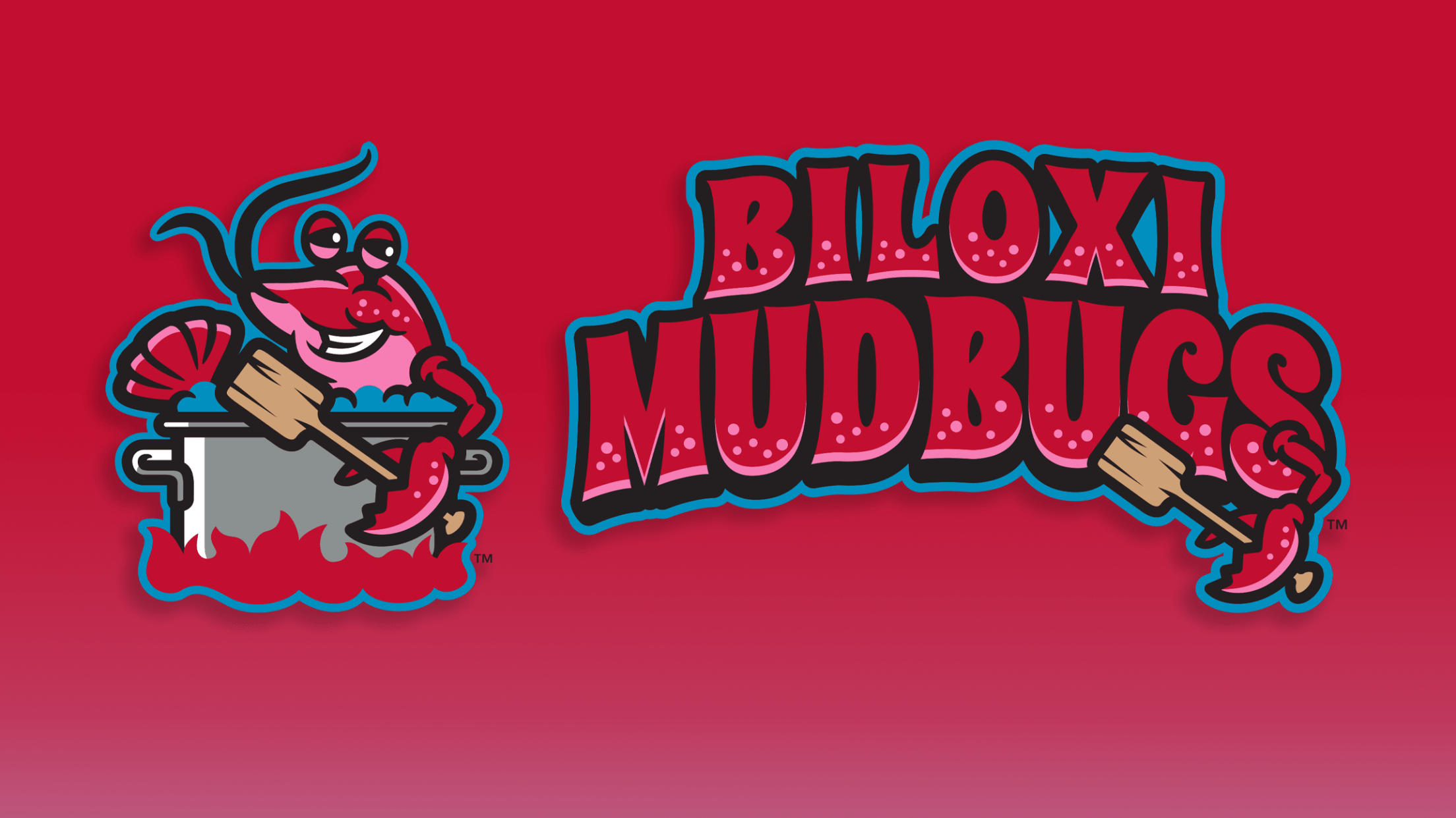 Brandiose, the award-winning studio behind the Shuckers, Beach Chickens and King Cakes identities, designed the logo set. The cap includes a red base with a turquoise brim and features the primary mudbug logo in a boiling pot. The jersey features a red base with the Biloxi Mudbugs wordmark on the chest, outlined in turquoise.