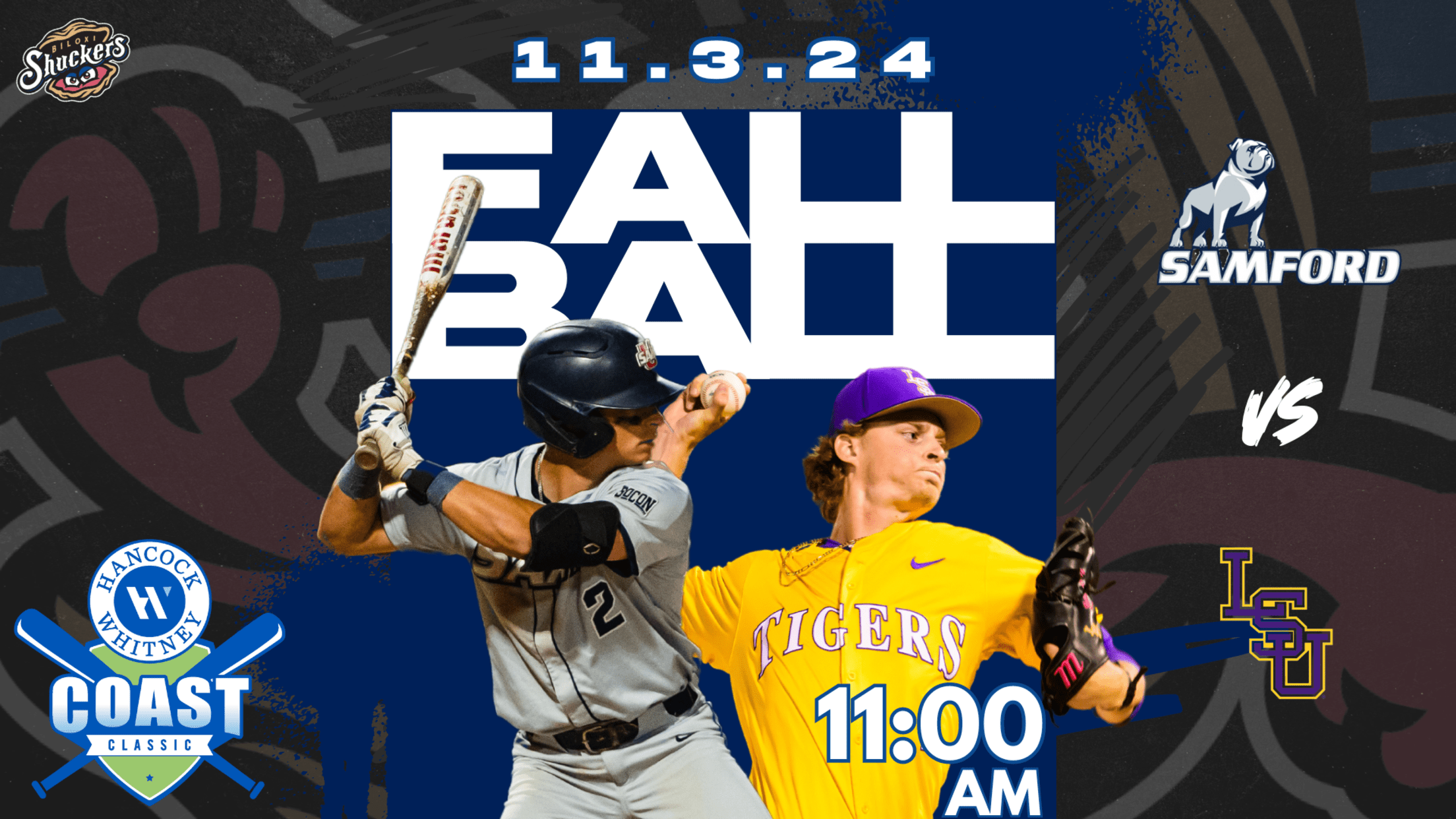 BILOXI, MS – The Biloxi Shuckers have announced that the LSU Tigers and Samford Bulldogs will play a fall exhibition game as part of the Hancock Whitney Classic at Keesler Federal Park on Sunday, November 3. First pitch is scheduled for 11:00 a.m. and gates open at 10:00 a.m. The