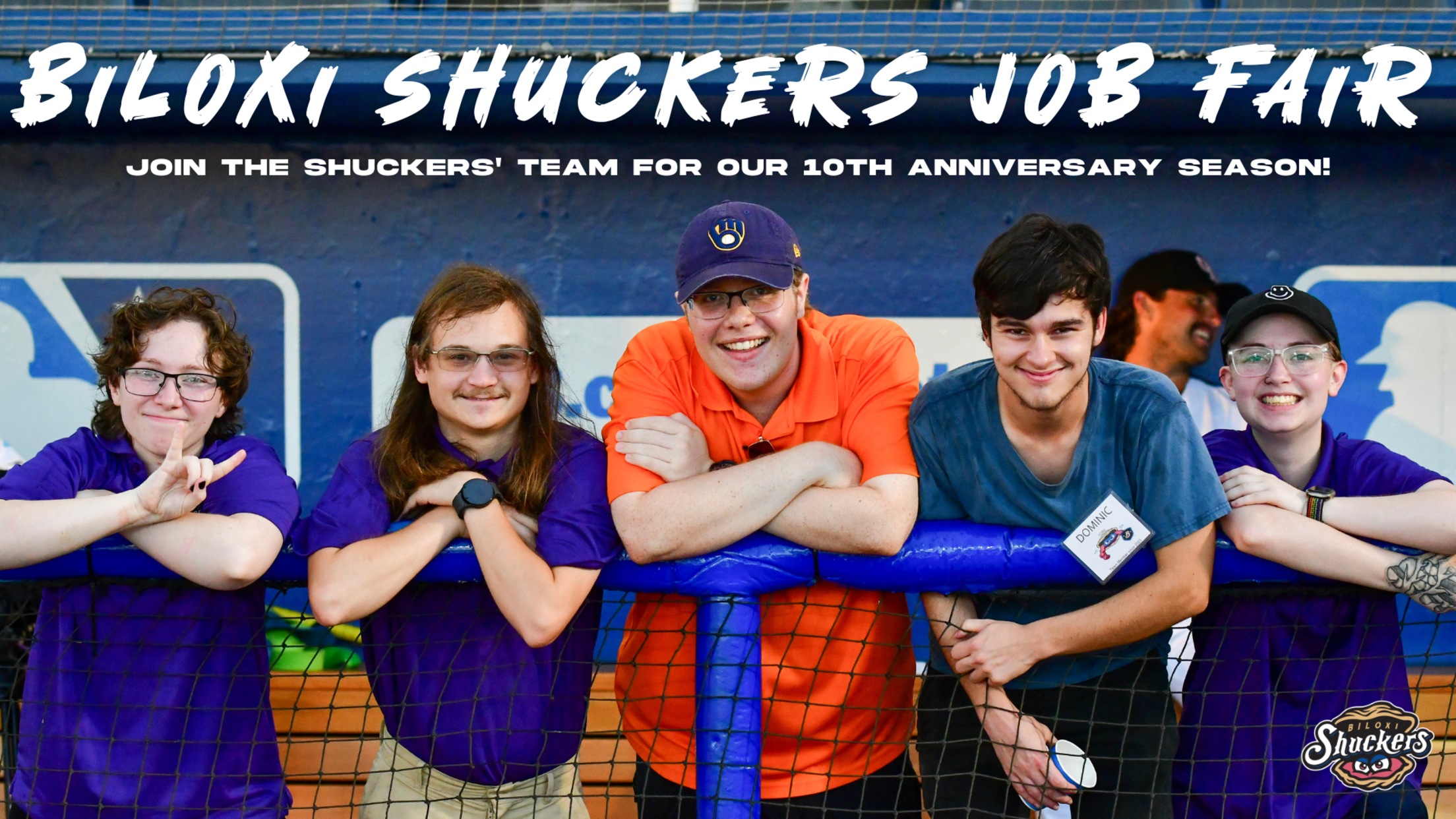 BILOXI, MS – The Biloxi Shuckers have announced that their annual Job Fair will be held from 4:30-6:30 p.m. on Thursday, January 23 at Keesler Federal Park. The Shuckers are looking for energetic, enthusiastic, friendly and dependable employees to join their gameday staff for the team’s 10th anniversary season, with the home slate beginning on Tuesday, April 8 against the Columbus Clingstones.