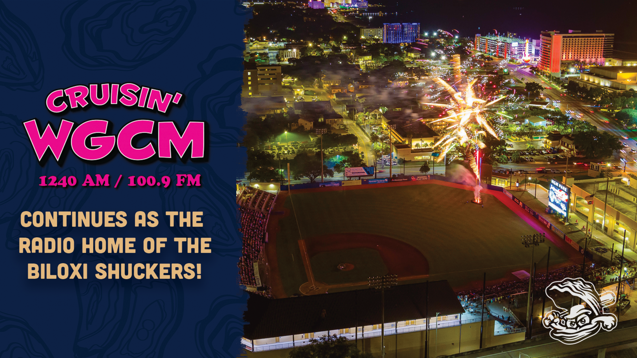 BILOXI, MS – The Biloxi Shuckers are excited to announce that Cruisin’ WGCM 1240 AM, 100.9 FM will continue as the flagship station for the Biloxi Shuckers Radio Network for the 2024 and 2025 seasons. All 138 games, plus playoff and exhibition games, will be aired on the station. Cruisin’ WGCM and the Coast Radio Group has been the radio home for Shuckers baseball since the team arrived on the Coast in 2015.