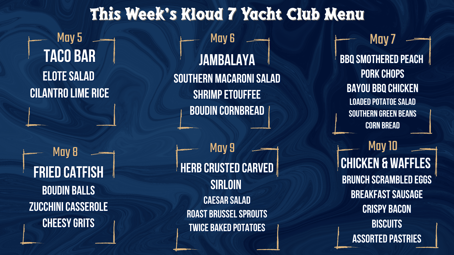 Groups outings in the Kloud 7 Yacht Club start at $54 per ticket with a minimum group of 12. Individual tickets to the Kloud 7 Yacht Club are also available for $60.