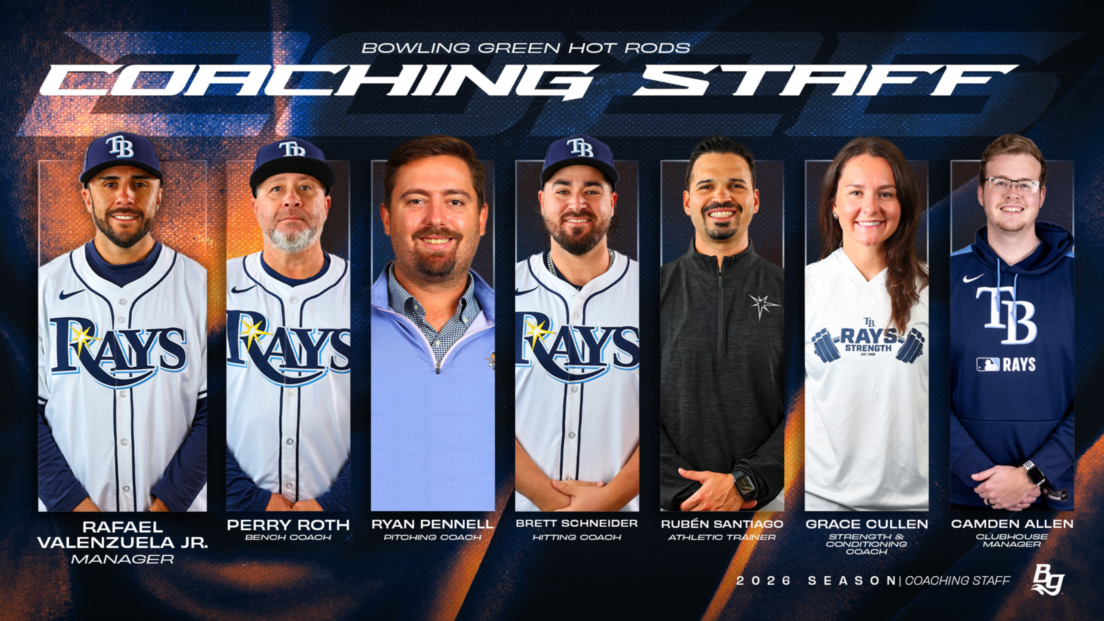 Bowling Green, Kentucky – The Bowling Green Hot Rods are excited to announce the field staff for the upcoming 2026 season. Rafael Valenzuela Jr. returns to Bowling Green Ballpark for his fourth season, alongside with six other familiar staffers and one new member.
