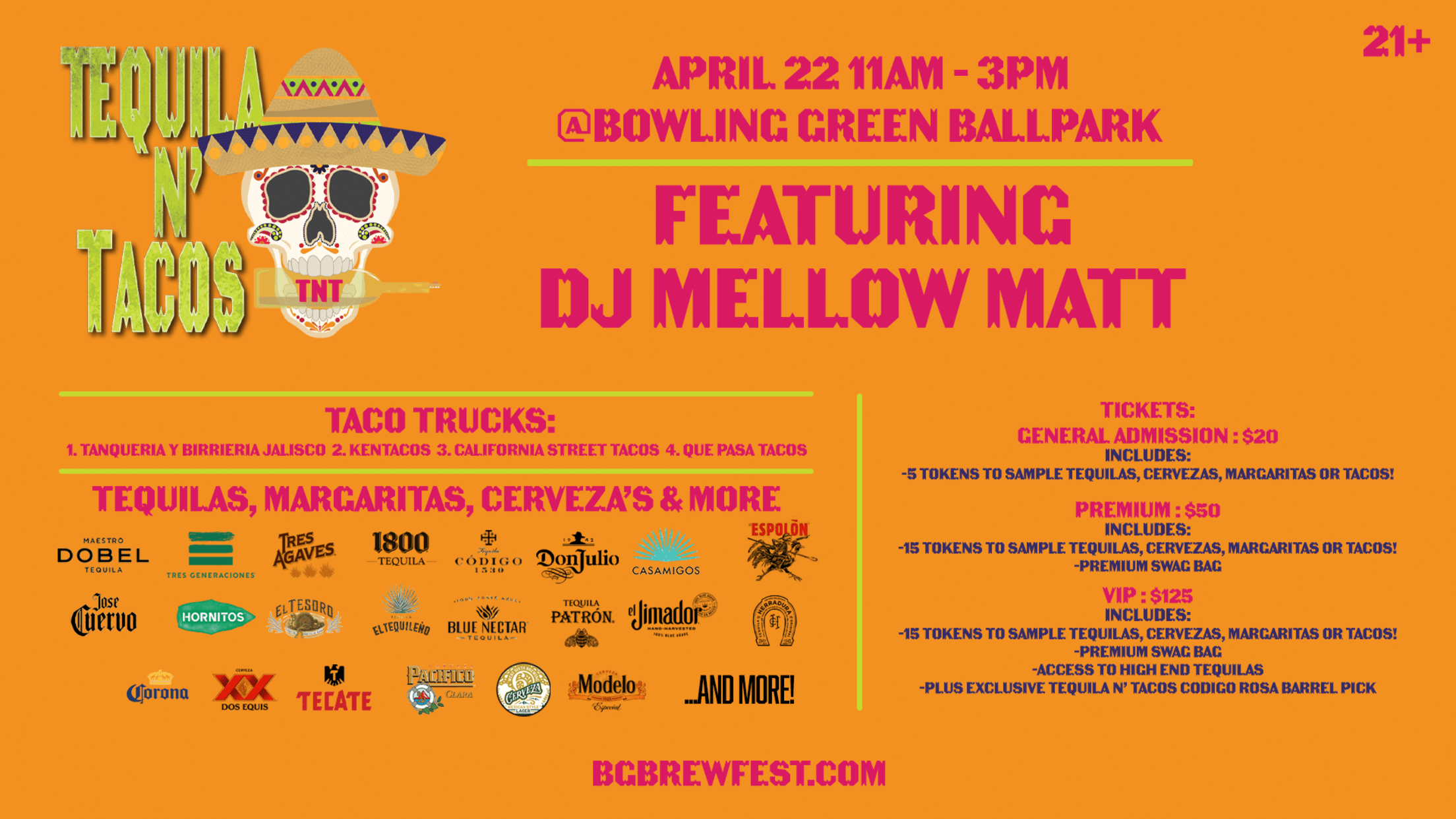 Bowling Green, Kentucky– The Bowling Green Hot Rods are excited to announce that Tequila and Tacos, a Bourbon and Brewfest event, will be held at Bowling Green Ballpark on Saturday, April 22 from 11:00 AM to 3:00 PM. Tickets will go on sale Friday, January 20 and the event will