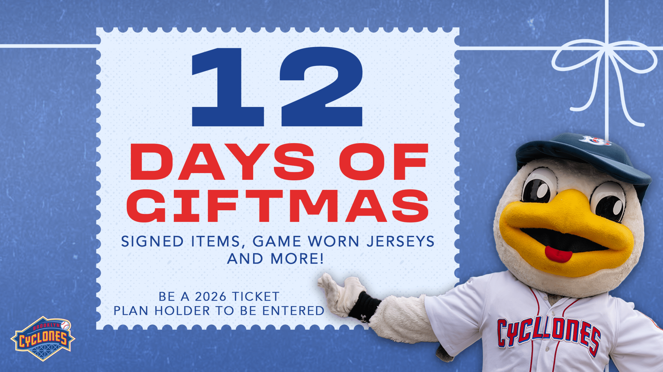 To celebrate the Holiday Season, the Cyclones are starting 12 Days of Giftmas starting on Friday, December 12th. Each day, for 12 days, we will randomly select an existing 2026 ticket plan holder - Flex Book, Mini Plan, Ballpark Pass, Season Membership - who will win a Cyclones prize. Here's