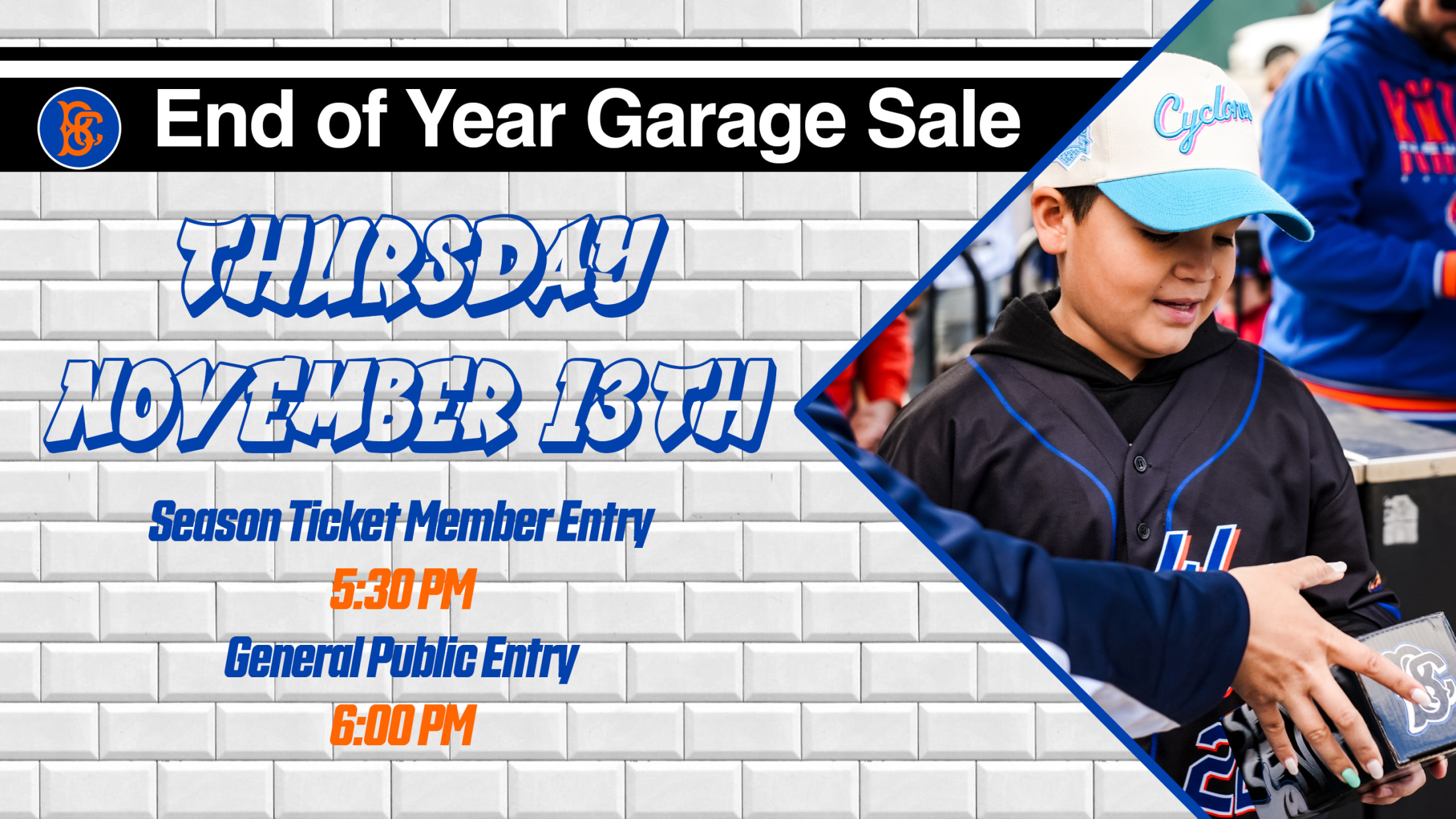 Join us on Thursday, November 13th for our annual Garage Sale. It's a great way to stock up on promo items like bobbleheads and caps, game-worn gear, and more. The event is CASH ONLY. Items will not be shipped and you need to claim them in person the day of the event.