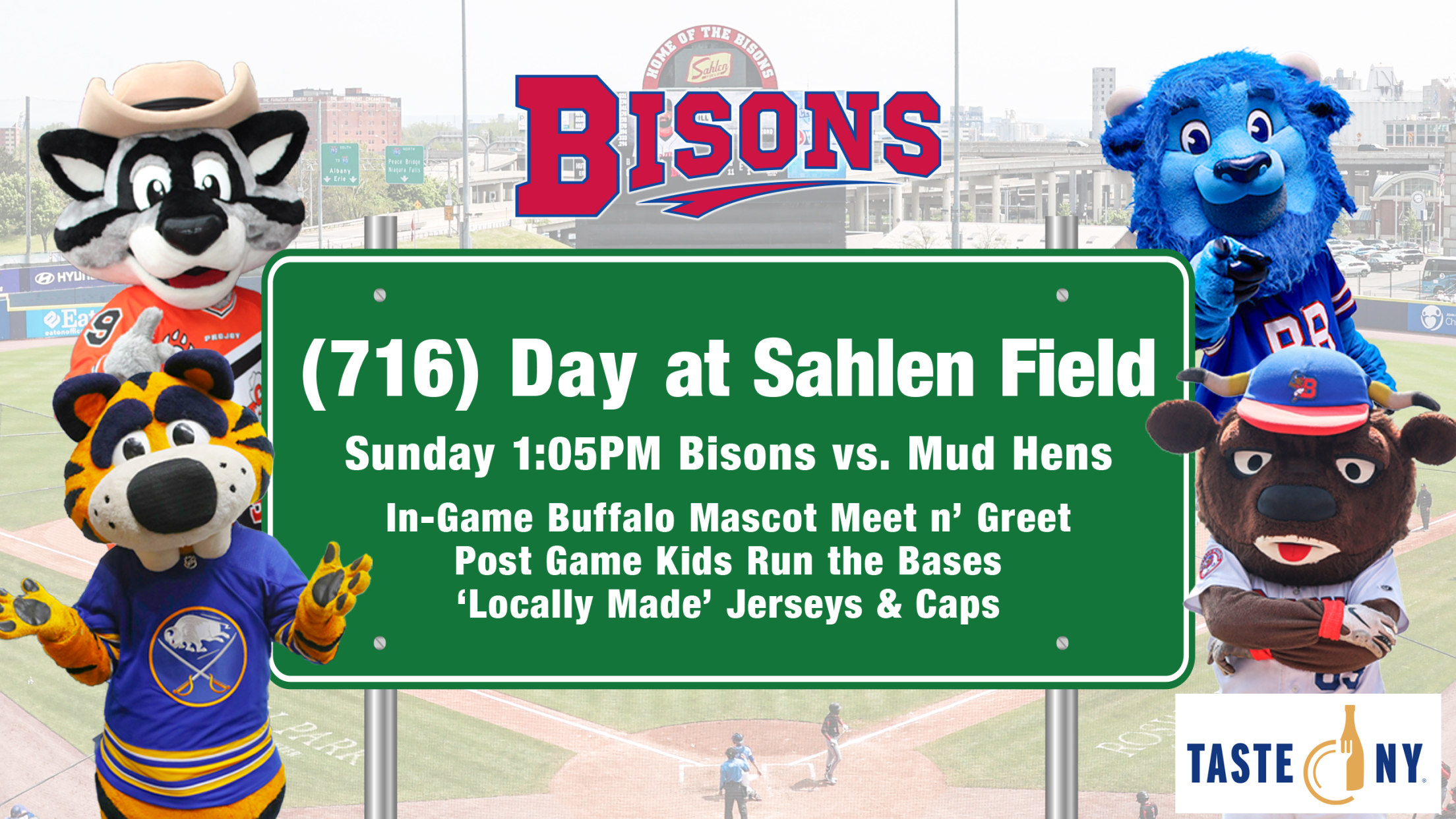 Western New York has the best people... the best sports fans... the best food... and of course, the best MASCOTS in all of sports. So, when Buster put out the invite to his friends to be a part of Sunday's (716) Day at Sahlen Field, presented by Taste NY, there was no surprise they all signed up for an unforgettable afternoon at the ballpark!