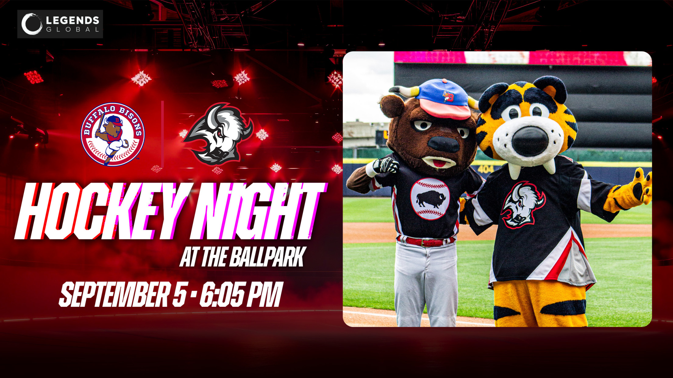 Circle your calendars for a pair of great ballpark traditions returning to Sahlen Field!!! Lacrosse Night with the Buffalo Bandits is back on Thursday, June 11 as the Herd hosts the Syracuse Mets (6:35 p.m.), while Hockey Night with the Buffalo Sabres will be Saturday, September 5 against the Worcester Red Sox (6:05 p.m.). Both of these fun-filled tradition are sponsored by LEGENDS.