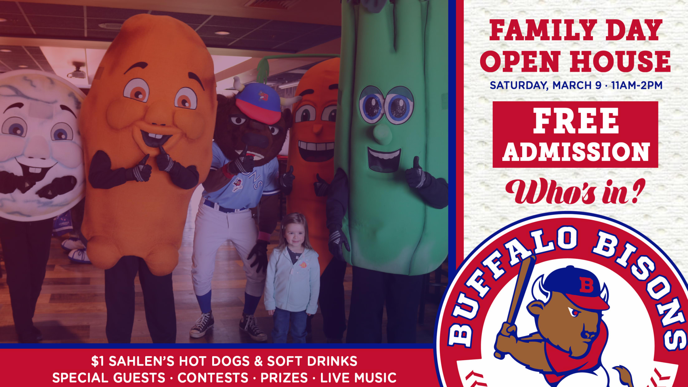 With the baseball season fast approaching, the Bisons today announced that they will host their annual Family Day Open House on Saturday, March 9 from 11 a.m. - 2 p.m. in conjunction with single-game tickets going on sale for the first time.