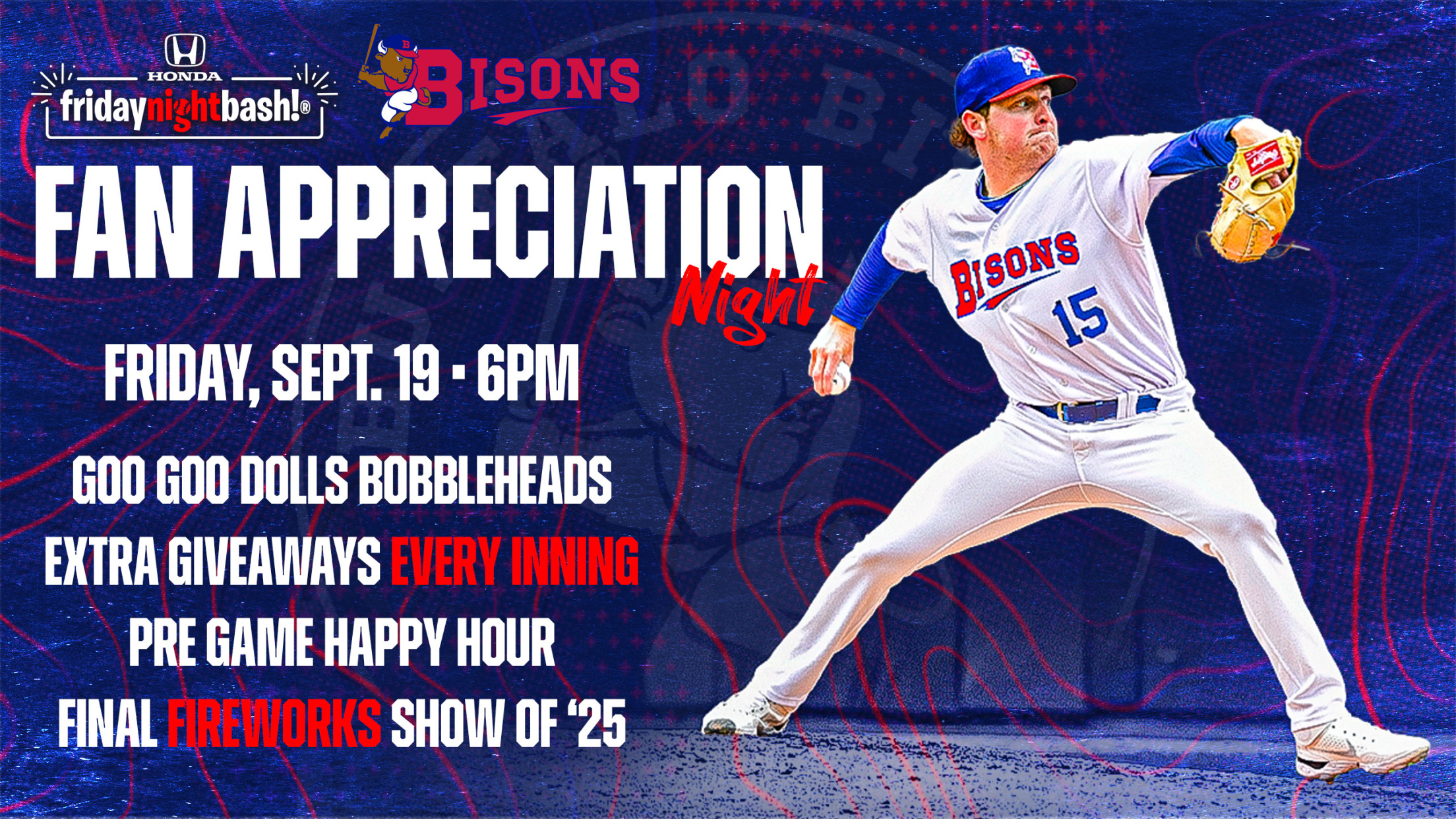 GET MY FAN APPRECIATION NIGHT TICKETS The great Bisons end of season tradition continues on Friday, September 19 and it's going to be a Fan Appreciation Night unlike any other in the ballpark's history! The Bisons host the Scranton/Wilkes-Barre RailRiders on Friday at 6:05 p.m., but you'll want to get