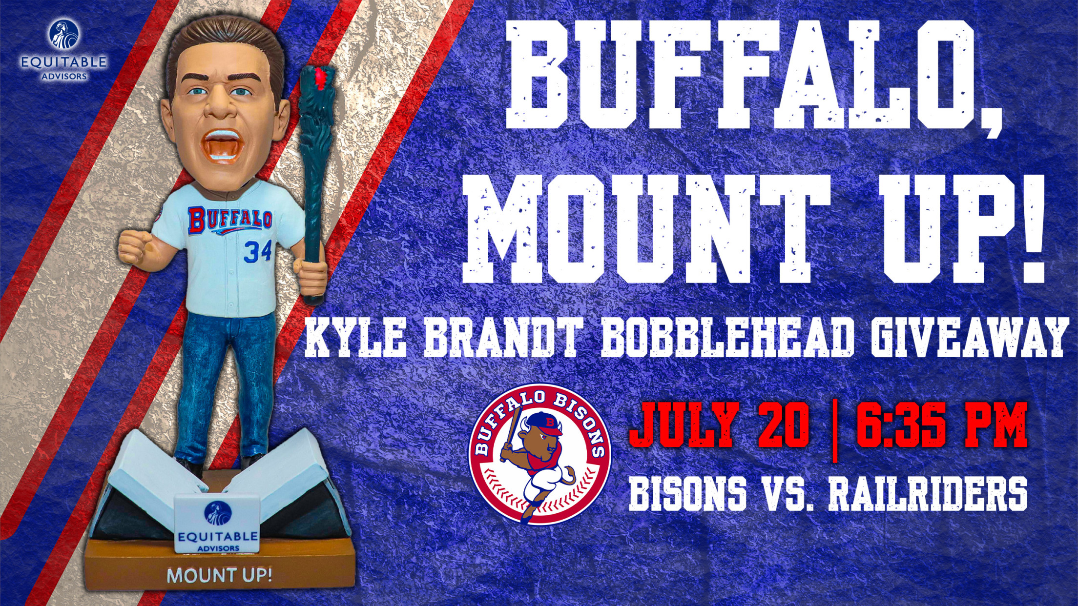 GET MY JULY 20 TICKETS Buffalo…. MOUNT UP!... because one of Buffalo sports’ greatest national supporters is coming to the (716) as the Bisons host ‘Buffalo, Mount Up!’ Night, featuring a Kyle Brandt Bobblehead Giveaway, Saturday, July 20 as the Herd hosts the Scranton/Wilkes-Barrie RailRiders at Sahlen Field (6:35 p.m.