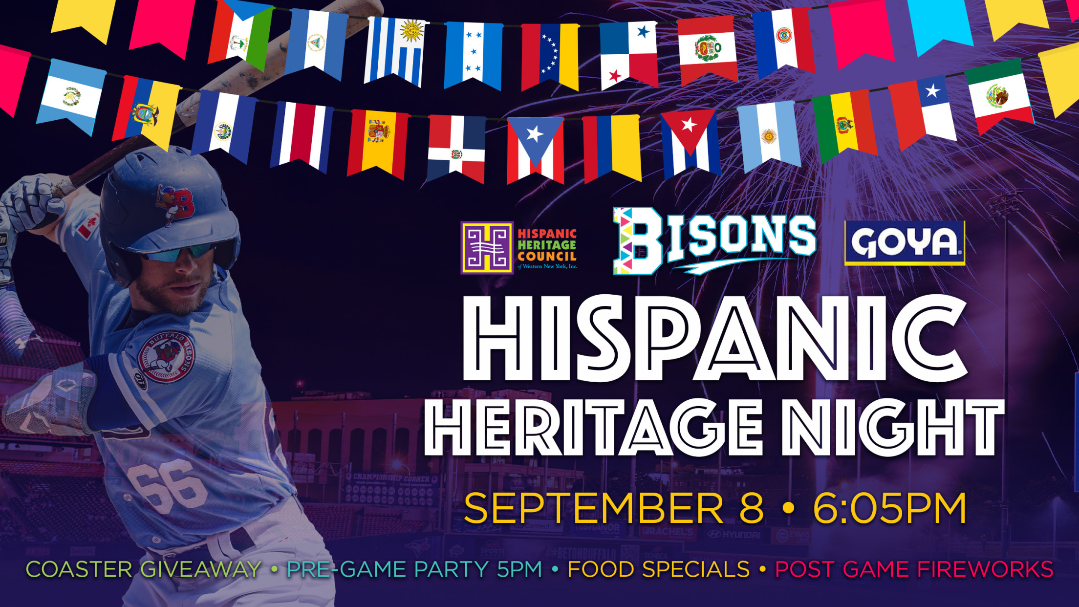 TICEKTS: Hispanic Heritage Night + Honda fridaynightbash! Our next Honda fridaynightbash! is going to be a fiesta as the night will also include our Hispanic Heritage Celebration at the ballpark, in cooperation with the Hispanic Heritage Council of Western New York and Goya. Along with the customary postgame Fireworks for