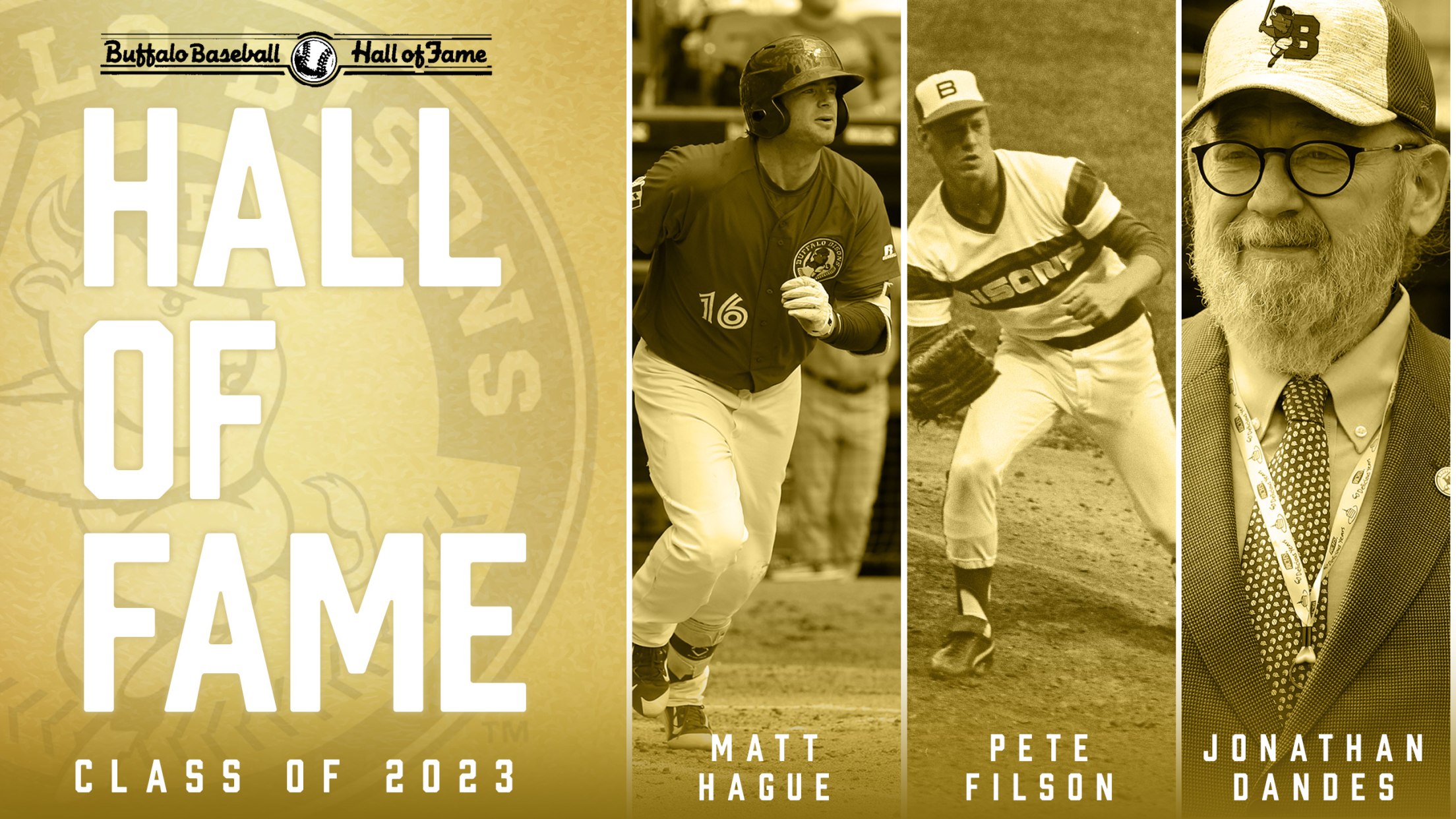 The Buffalo Baseball Hall of Fame Committee is proud to announce that former Bisons infielder and current Hitting Coach MATT HAGUE, pitcher PETE FILSON and longtime Rich Baseball Operations President JONATHAN DANDES have been elected to the Buffalo Baseball Hall of Fame. The Hall of Fame’s Class of 2023 will be formally inducted before and during the Bisons game against the Worcester Red Sox on Saturday, July 1 at Sahlen Field (6:05 p.m.).