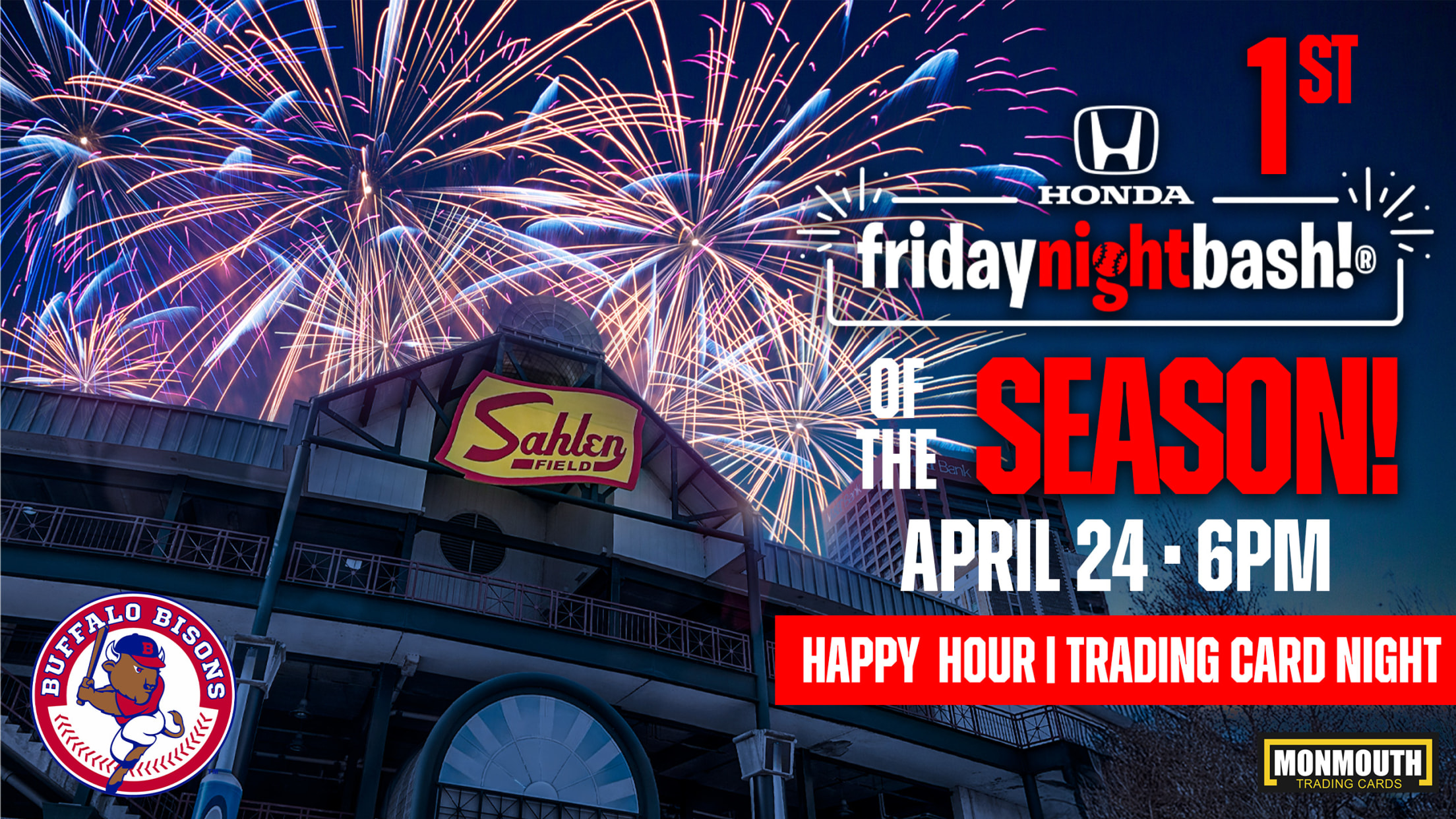 GET MY TICKETS The best night of the ballpark is back! The Bisons Honda fridaynightbash! series returns with our first 'Bash of the season, Friday, April 24 as the Herd hosts the Columbus Clippers (6:05 p.m.). Pregame Resurgence Brewing Happy Hour, postgame Fireworks and a fun new theme... Trading Card