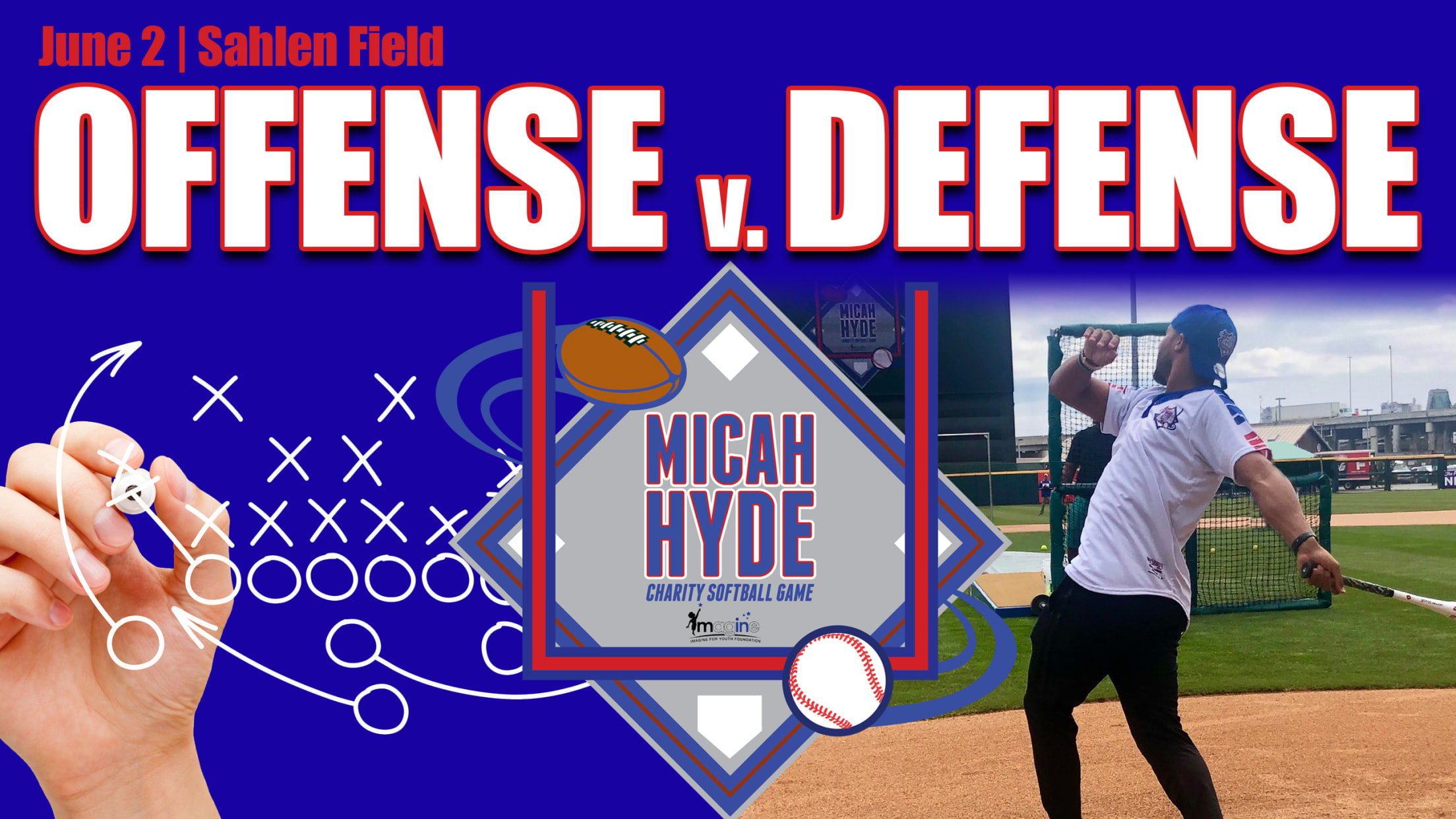 We all know defense wins championships… but can it turn an inning-ending doubleplay?The Offense v. Defense debate goes from the gridiron to the diamond on Sunday, June 2 as Sahlen Field hosts the Micah Hyde Charity Softball Game. Join us for an afternoon of family fun as Micah Hyde and