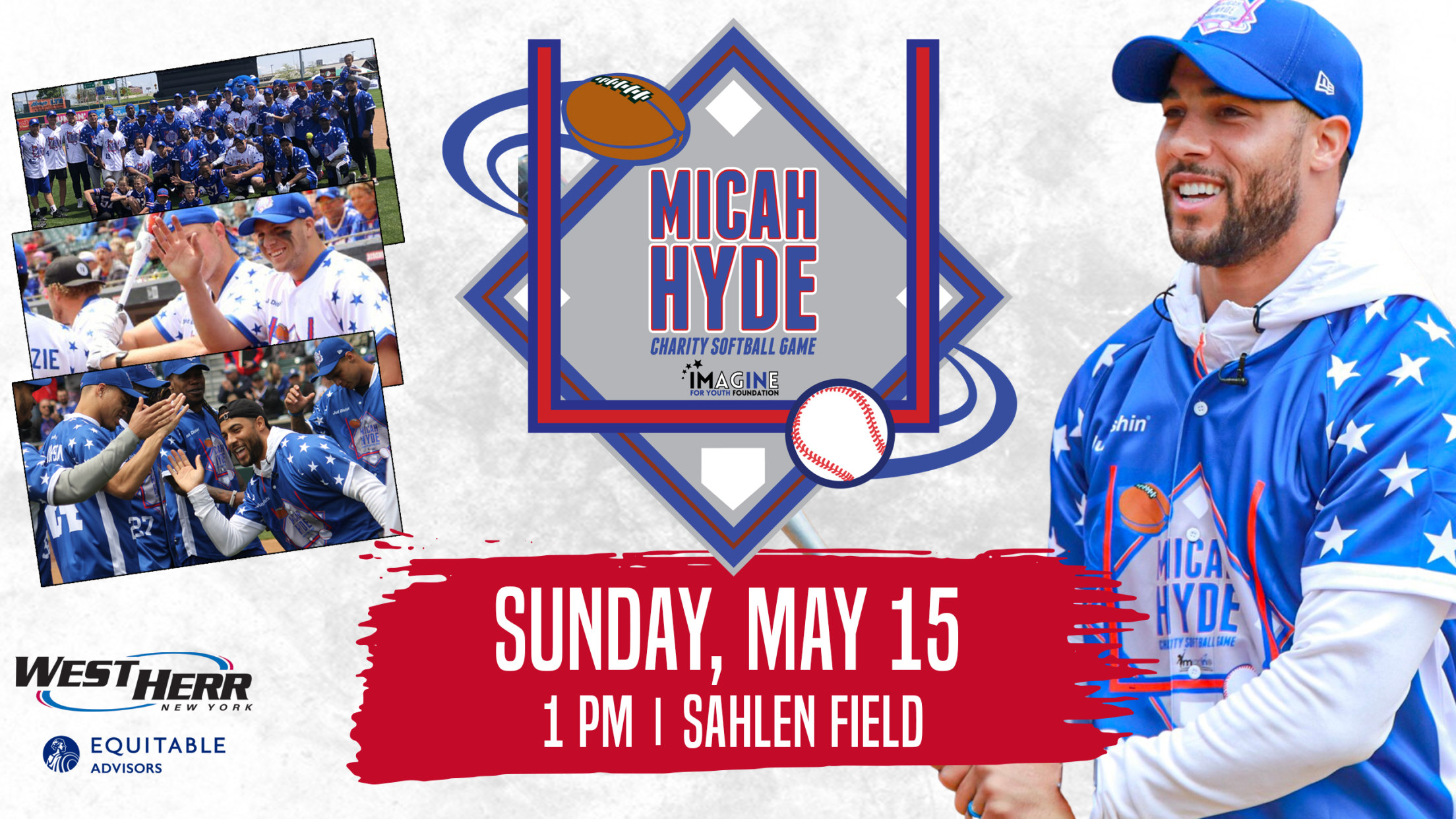 The Micah Hyde Charity Softball Game, benefiting his IMagINe for Youth Foundation presented by West Herr Automotive Group with support from Equitable Advisors, will return to Sahlen Field, home of the Buffalo Bisons, on Sunday, May 15 (1pm). >>>Tickets are on sale now