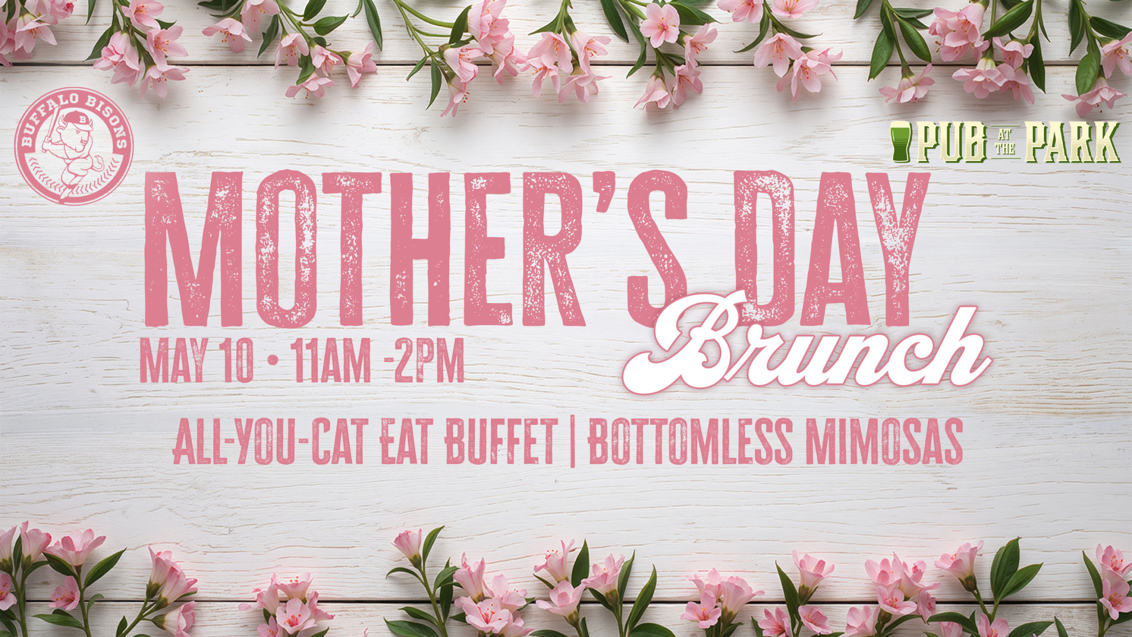 MAKE YOUR RESERVATIONS Celebrate this Mother's Day at the ballpark with a a special All-You-Can-Eat Mother's Day Brunch Buffet at the Pub at the Park Restaurant at Sahlen Field, featuring expanded food offering and bottomless mimosas. RESERVATIONS HERE While the Bisons are on the road this year for Mom's big
