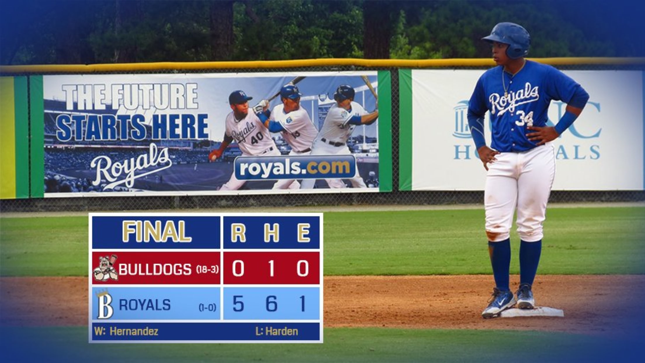 The game was highlighted by a combined one-hitter thrown by five Royals pitchers. RHP Carlos Hernandez got the start, and tossed 4.2 innings of shutout baseball, allowing one hit and striking out an impressive 11 hitters.