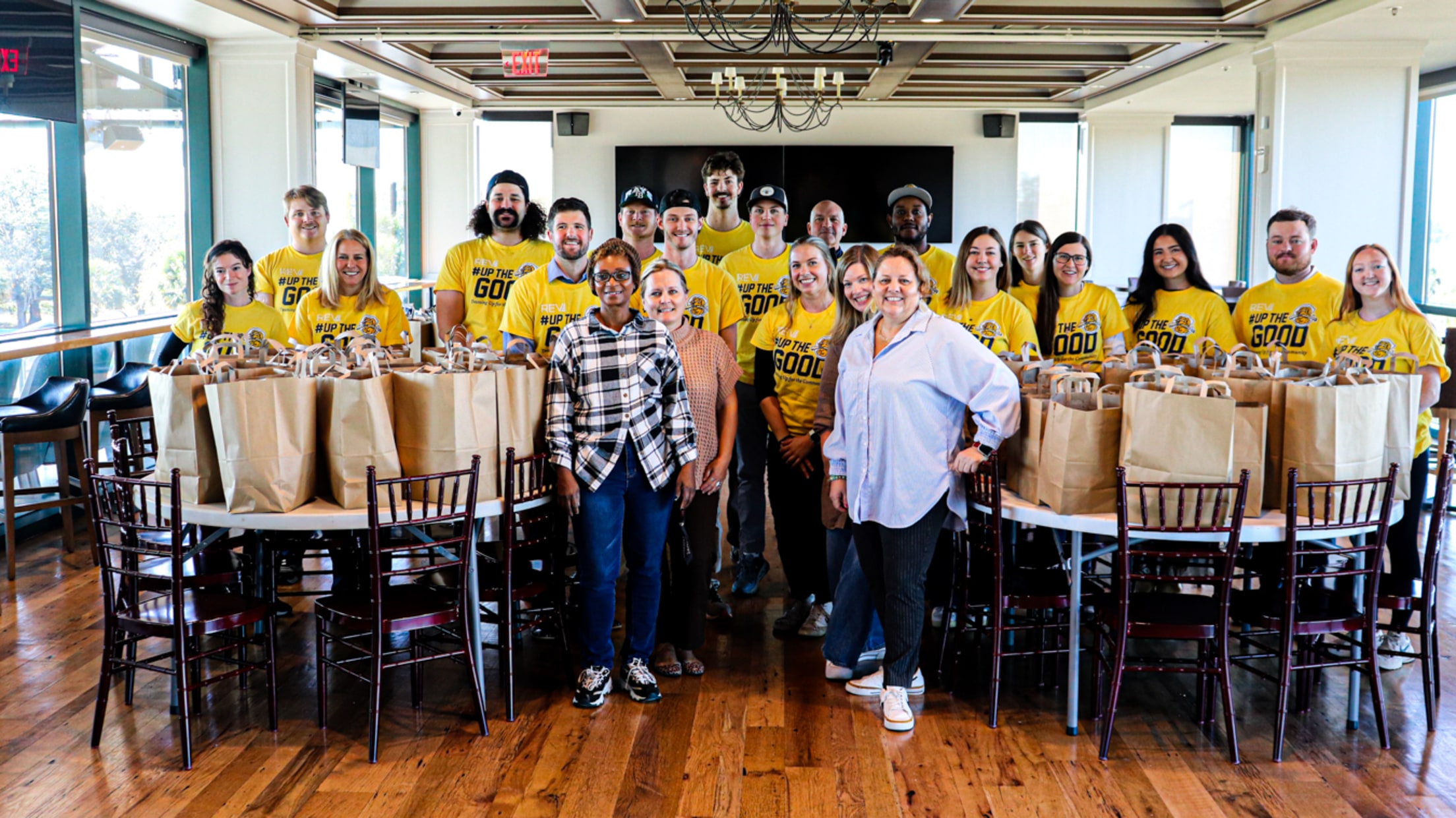 CHARLESTON, SC – The Charleston RiverDogs front office staff held a Thanksgiving packing party on Thursday morning inside the Segra Club at Joseph P. Riley, Jr. Park, packing bags full of food donated by Food Lion for Windwood Family Services. REV Federal Credit Union is the RiverDogs’ official volunteer partner.