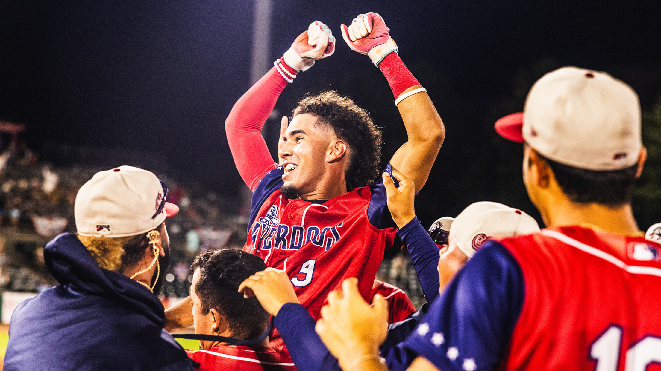 The bottom of the 10th inning began with the RiverDogs (10-5, 37-43) trailing 10-9. Jhon Diaz opened the frame with a soft single to right and then stole second base to put the winning run in scoring position immediately. Angel Mateo popped out on the infield for the first out. Enderson Delgado followed with a base hit to right field that tied the game, but Jacob Wetzel threw out Diaz at the plate as he tried to score the winning run. Myrtle Beach pitcher Scarlyn Lebron hit Raudelis Martinez and walked Bryan Broecker to load the bases, setting the stage for Gonzalez’s heroics.