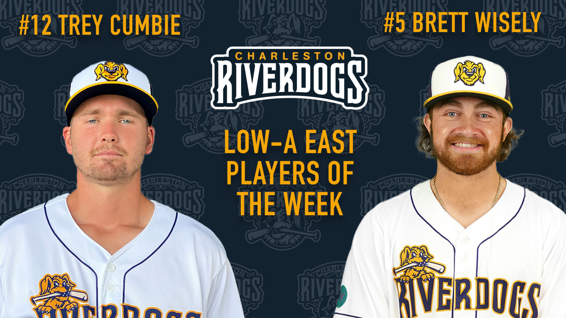 CHARLESTON, S.C. - Charleston RiverDogs infielder Brett Wisely has been named the Low-A East Player of the Week and reliever Trey Cumbie the circuit's Pitcher of the Week for the week of June 19-25 per a Minor League Baseball announcement on Monday afternoon. The pair received the honor following their