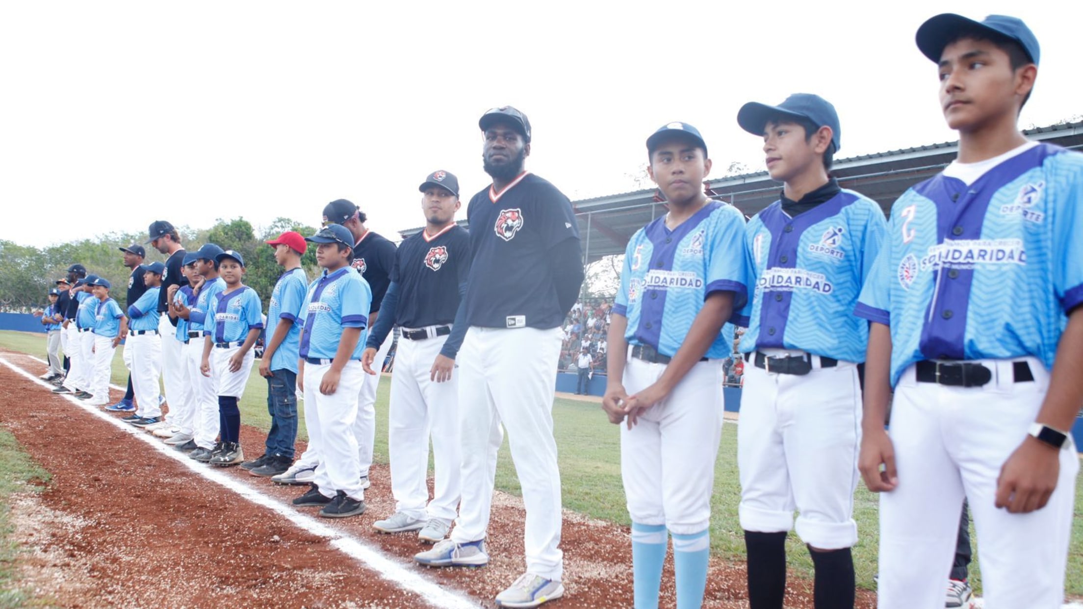 En punto de las tres de la tarde, en la campo 1 de la Unidad Deportiva Riviera Maya, y durante la ceremonia dentro del protocolo de presentación el equipo felino “que nació campeón” dirigido por su manager, el texano Jesse García, salió acompañados por la Selección de Solidaridad de 13-14 años y los Piratas de Campeche, del manager debutante Oswaldo Morejón, con los seleccionados de 15-16 años de edad.