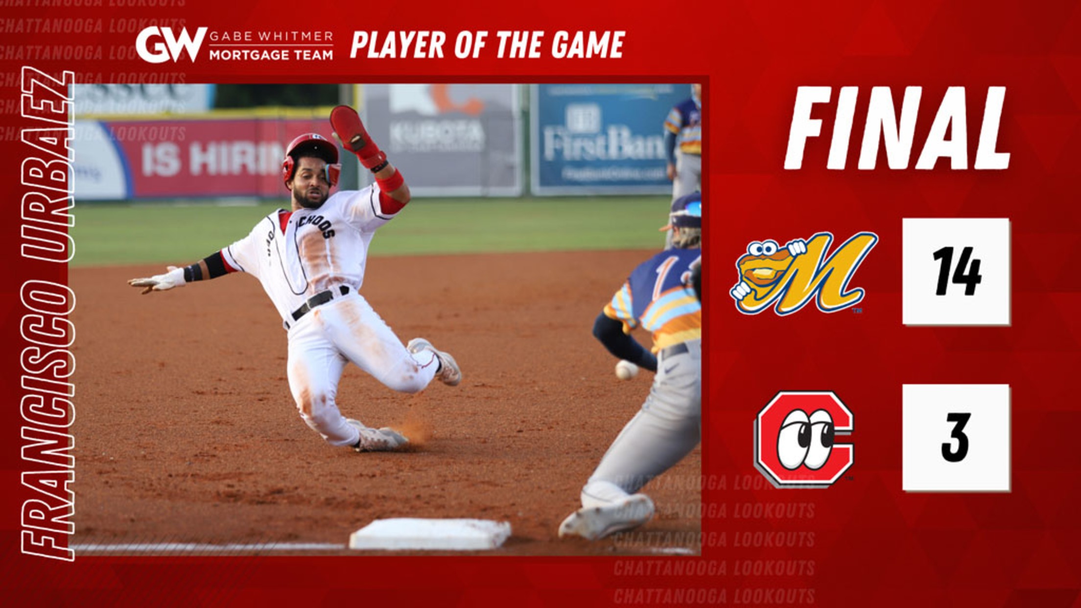 For the Lookouts, Francisco Urbaez led the way with three RBI, including a two-run homer in the eighth. Tomorrow, the Choo-Choos return with Rhett Lowder on the bump. This month, the right-hander has 12 strikeouts in 11 innings with a 2.45 ERA.
