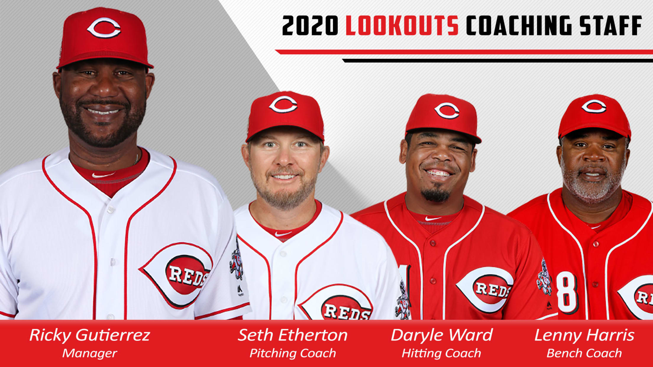 "We're thrilled about the coaching staff that will be with the 2020 Lookouts this season," said Reds Senior Director of Player Development Eric Lee. "Each of these coaches had unique paths that brought them to the pinnacle of our game, and we know the players will be beneficiaries of the many years of combined Major League experience amongst them. We're confident that the staff will represent the Reds and Lookouts well and will hold our players accountable to the highest standards on and off the field."
