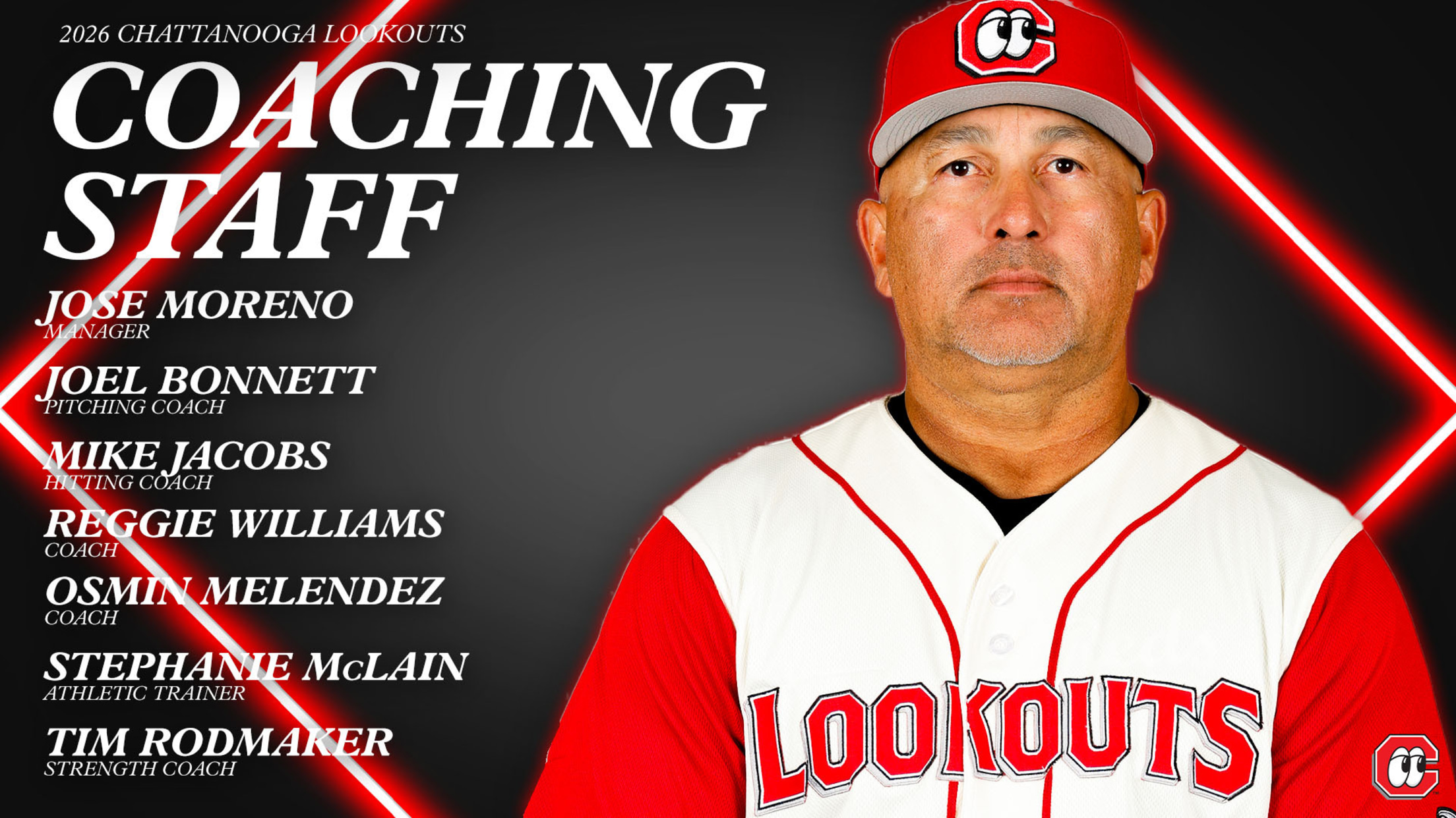 CHATTANOOGA, Tenn. – Today, the Cincinnati Reds announced the Chattanooga Lookouts’ 2026 coaching staff, led once again by Manager Jose Moreno, who returns for his fifth season in Chattanooga. Joining Moreno are returning coaches Pitching Coach Joel Bonnett and Hitting Coach Mike Jacobs, along with Coach Reggie Williams, Coach Osmin Melendez, Athletic Trainer Stephanie McLain, and Strength & Conditioning Coach Tim Rodmaker. The organization will also add a Performance Coach, to be announced at a later date.
