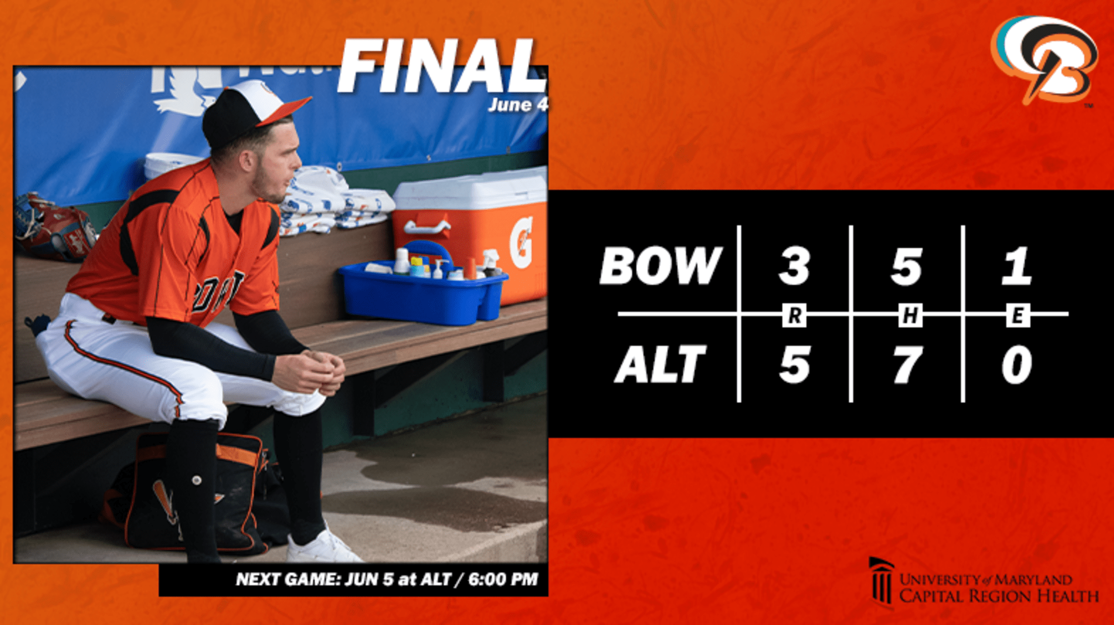 With only 12 total hits and five total walks, the game only last 2:14, one of the fastest games of the season. Bowie falls to 19-29 with the loss, but will still have an opportunity to win the series with Altoona, as the six-game set concludes on Sunday. Drew Rom will start for the second time in the series, with the first pitch scheduled for 6:00 p.m.