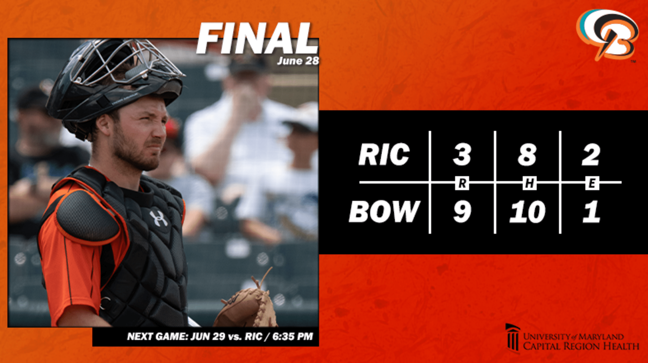 With this fresh new start, Bowie bumps to 1-0 in the second half of the season and 28-42 overall. Bowie and Richmond will meet again on Wednesday for the second game in their series on Wednesday, with the first pitch of the game set for 6:35 p.m.